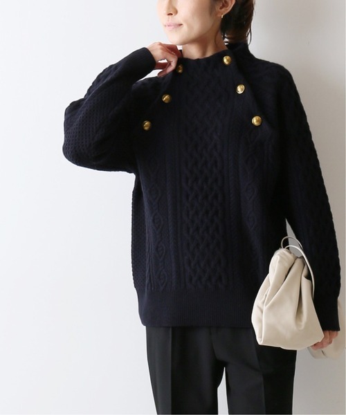 上質で柔らかでふっくらとしたハミルトンウールが高級感のある風合いで、滑らかな肌触りで着心地も抜群です。こなれ感のあるボトルネックがどこかモードで、ナチュラルになりやすいアラン編みを大人っぽい表情に仕上げています。