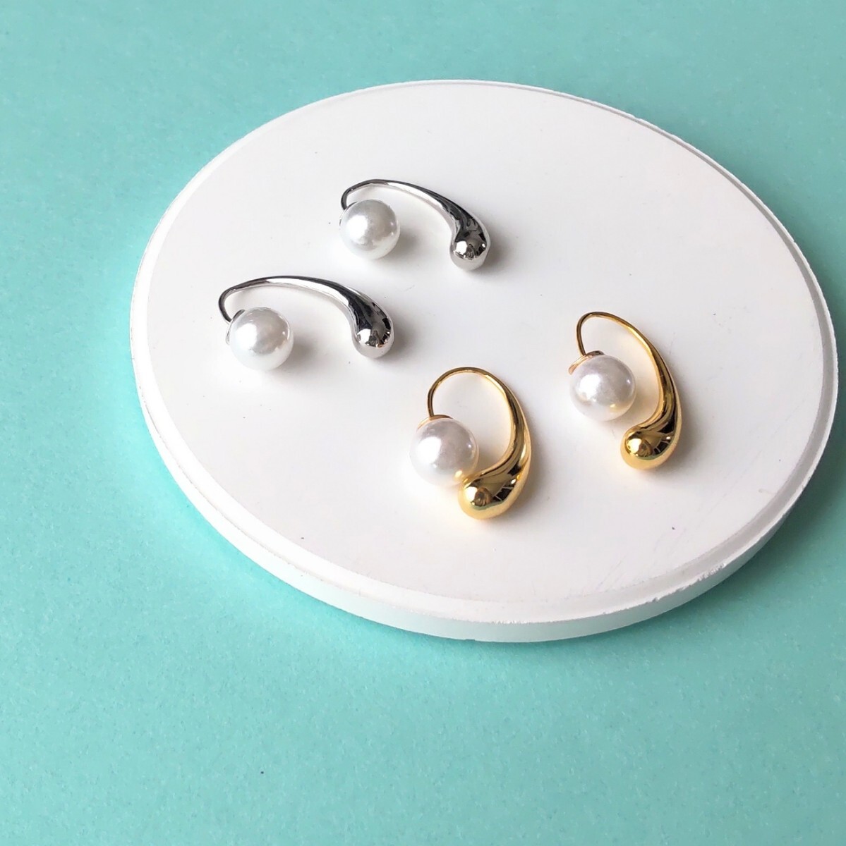 雫のようなティアドロップ型のフックピアスとパールキャッチが耳元を上品に飾ります。