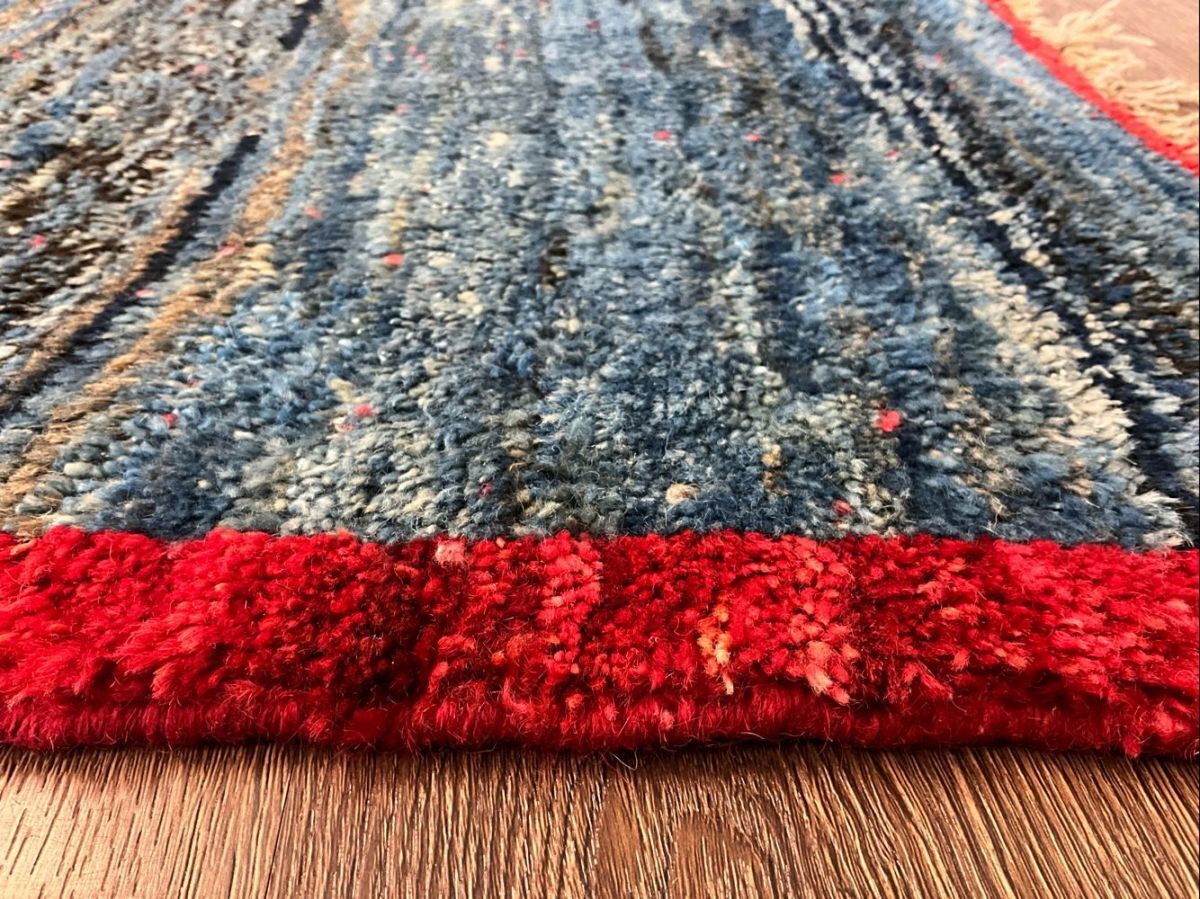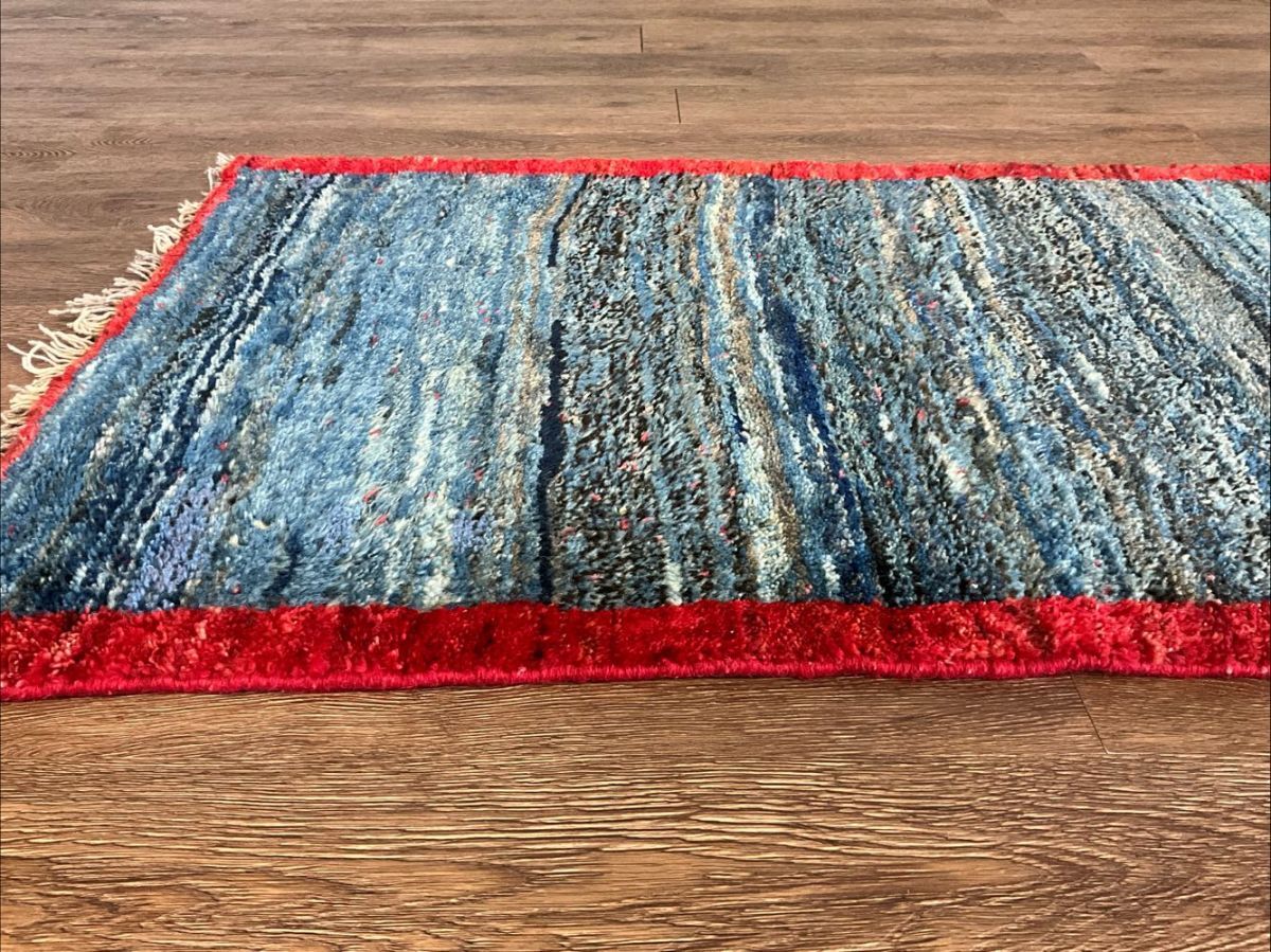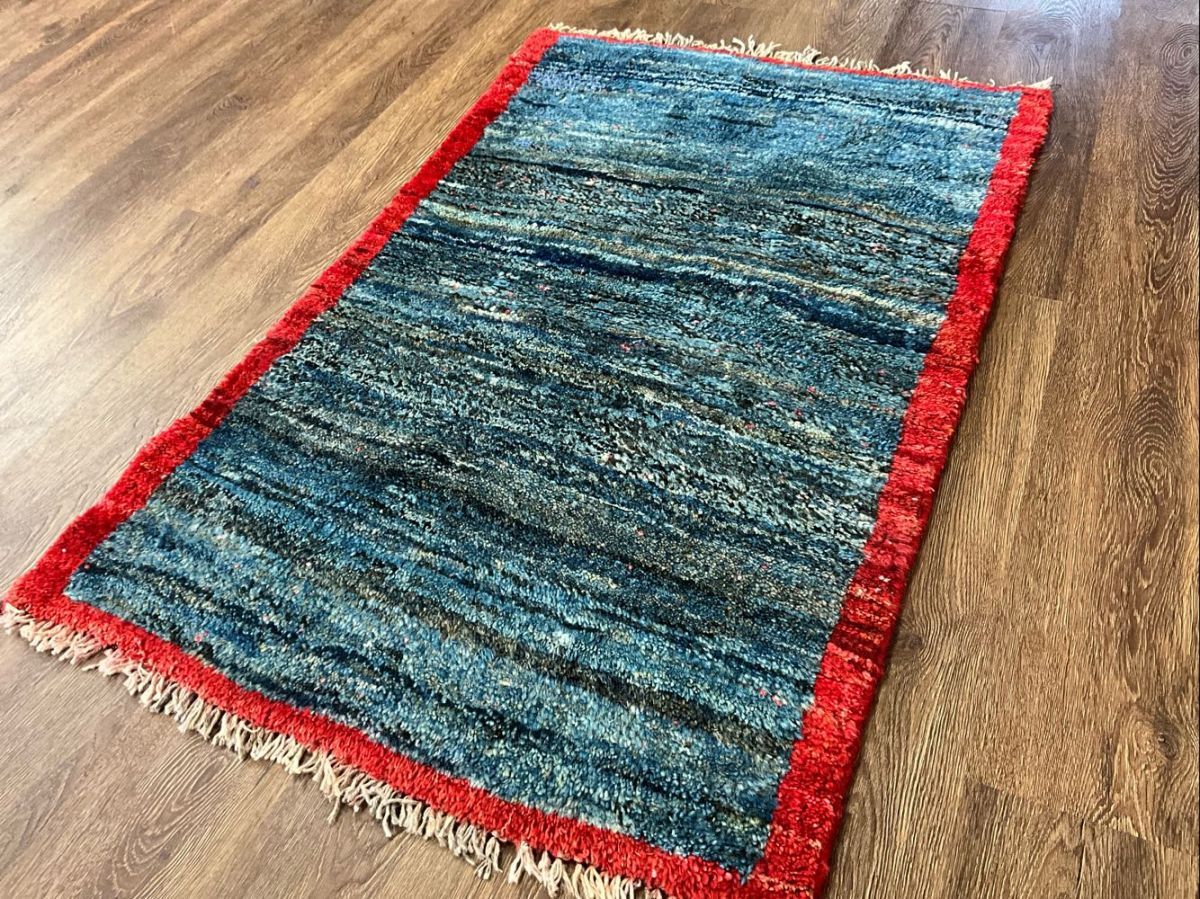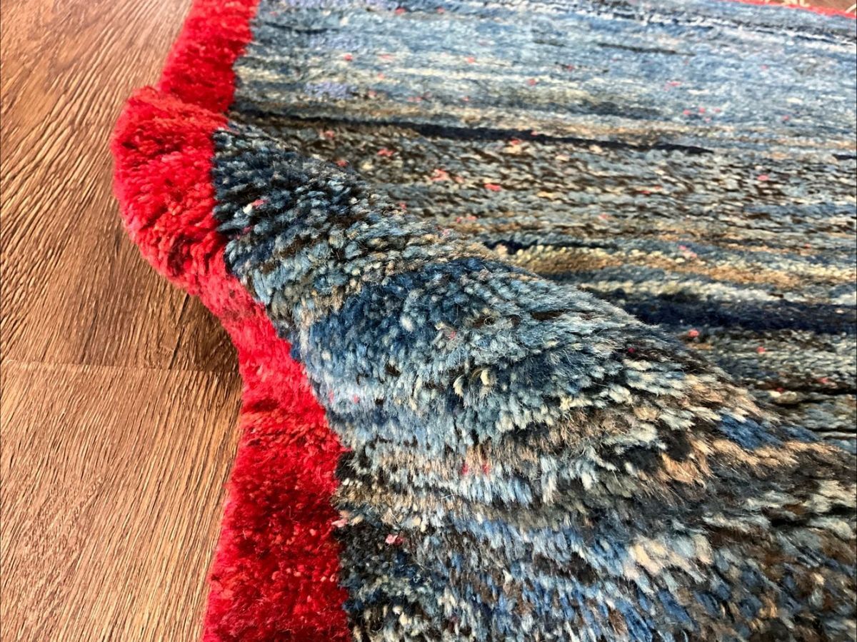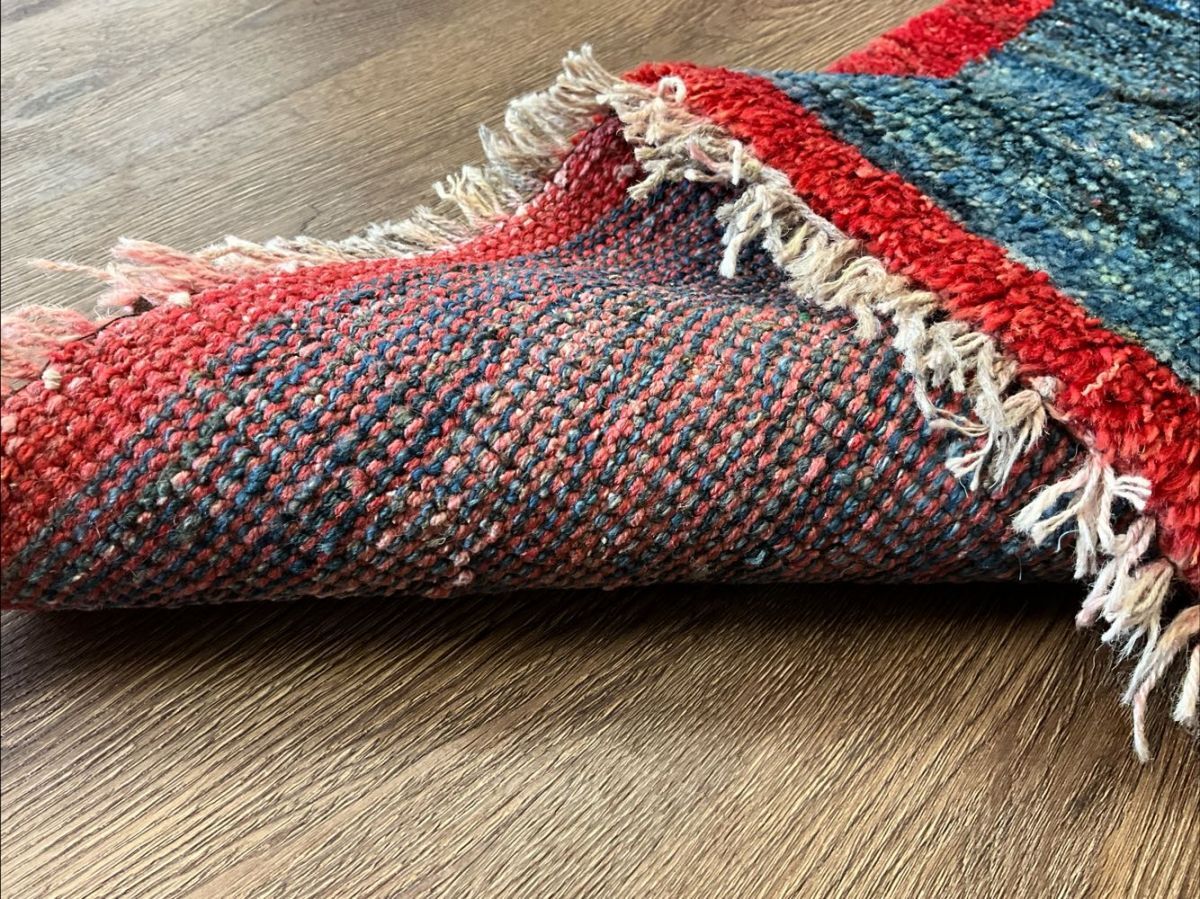 ★手織りの味わい★110×72cm ペルシャ絨毯 ギャッベ ラグ 草木染め ハンドメイド ヴィンテージ ブルー カーペット 02ADPRS250916014D