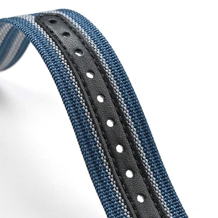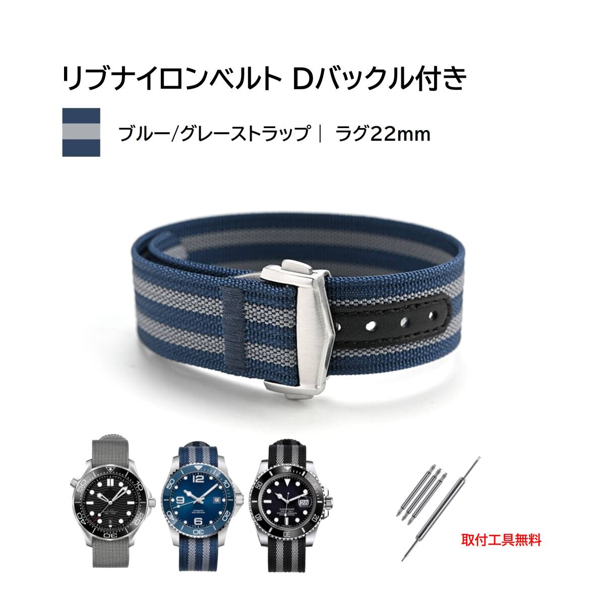 リブナイロンベルト Dバックル付き ラグ22mm ブルー/グレーストラップ