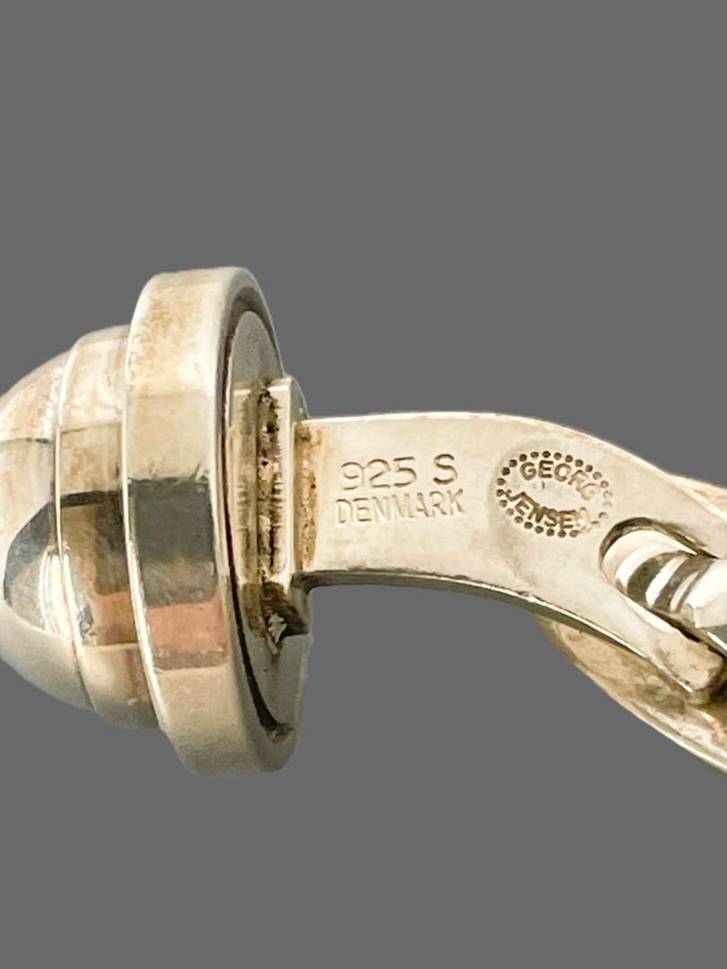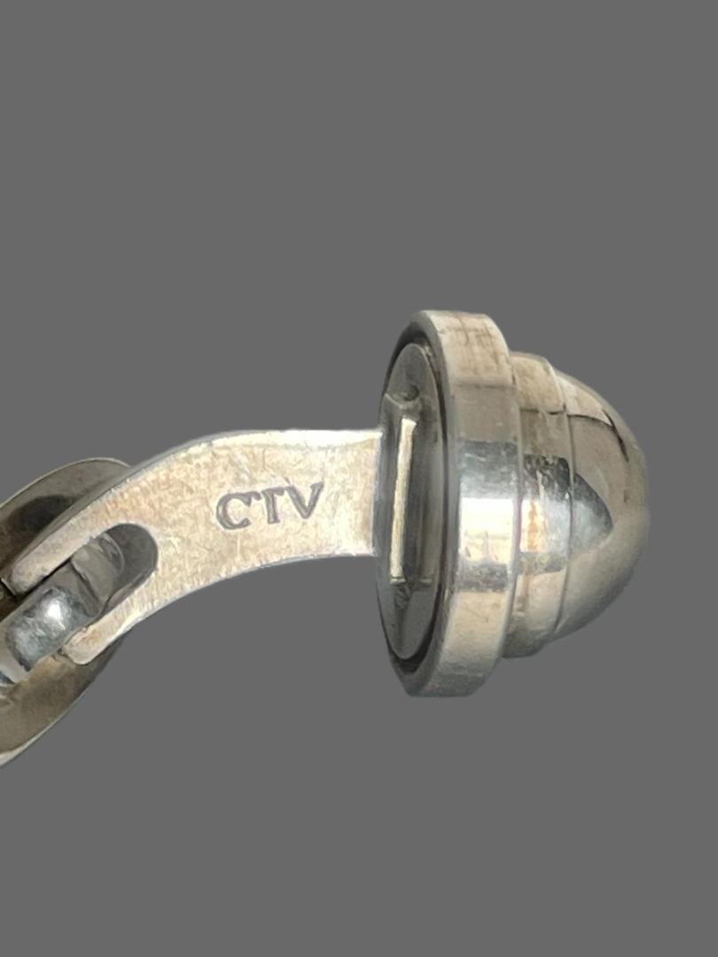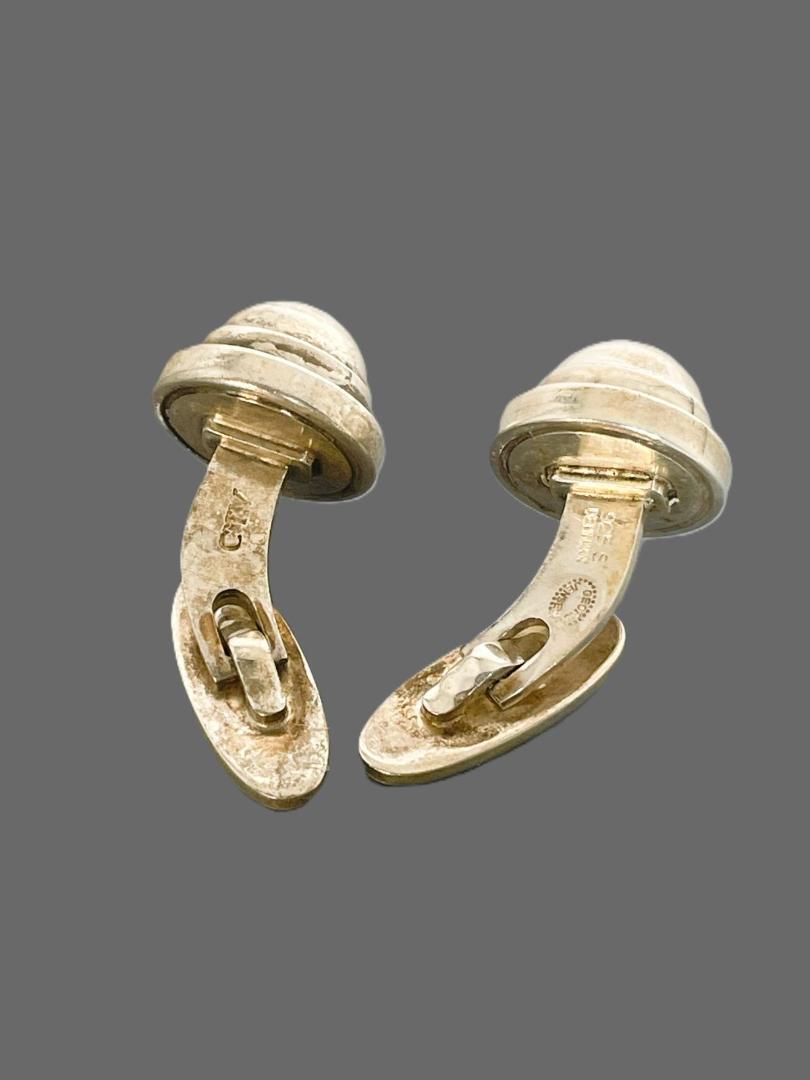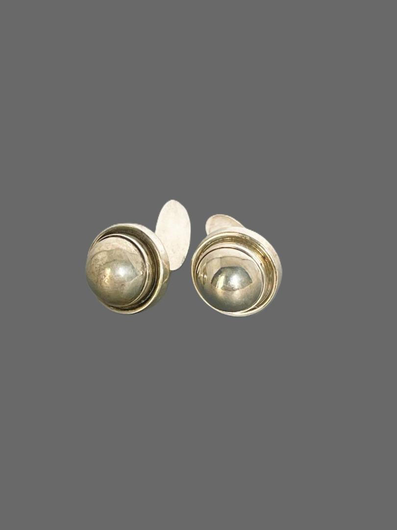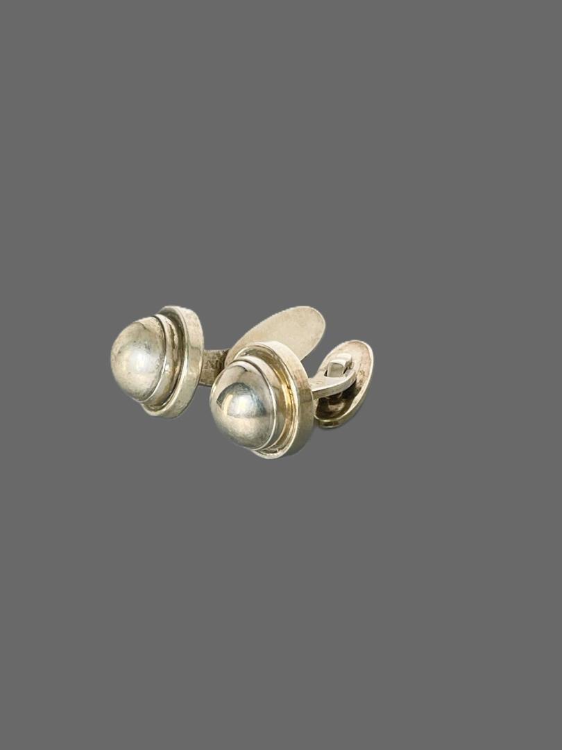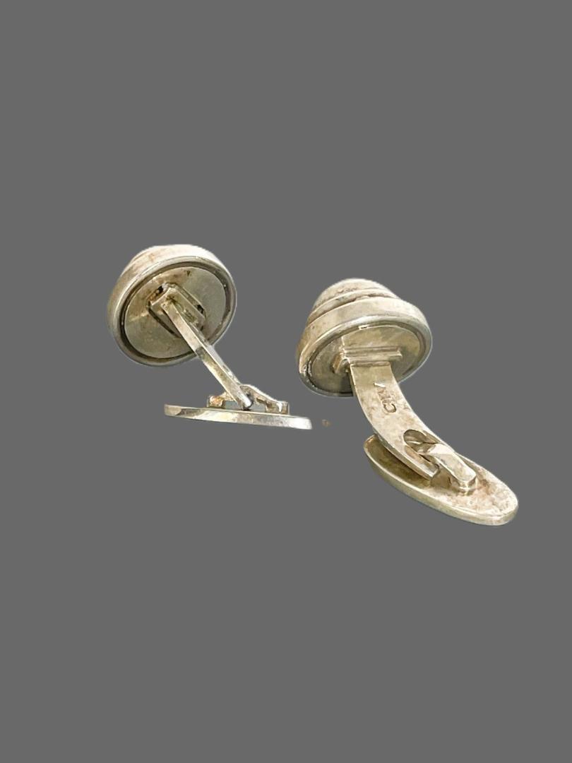 シルバー製の丸いデザインのカフリンクス、二重リングが特徴。