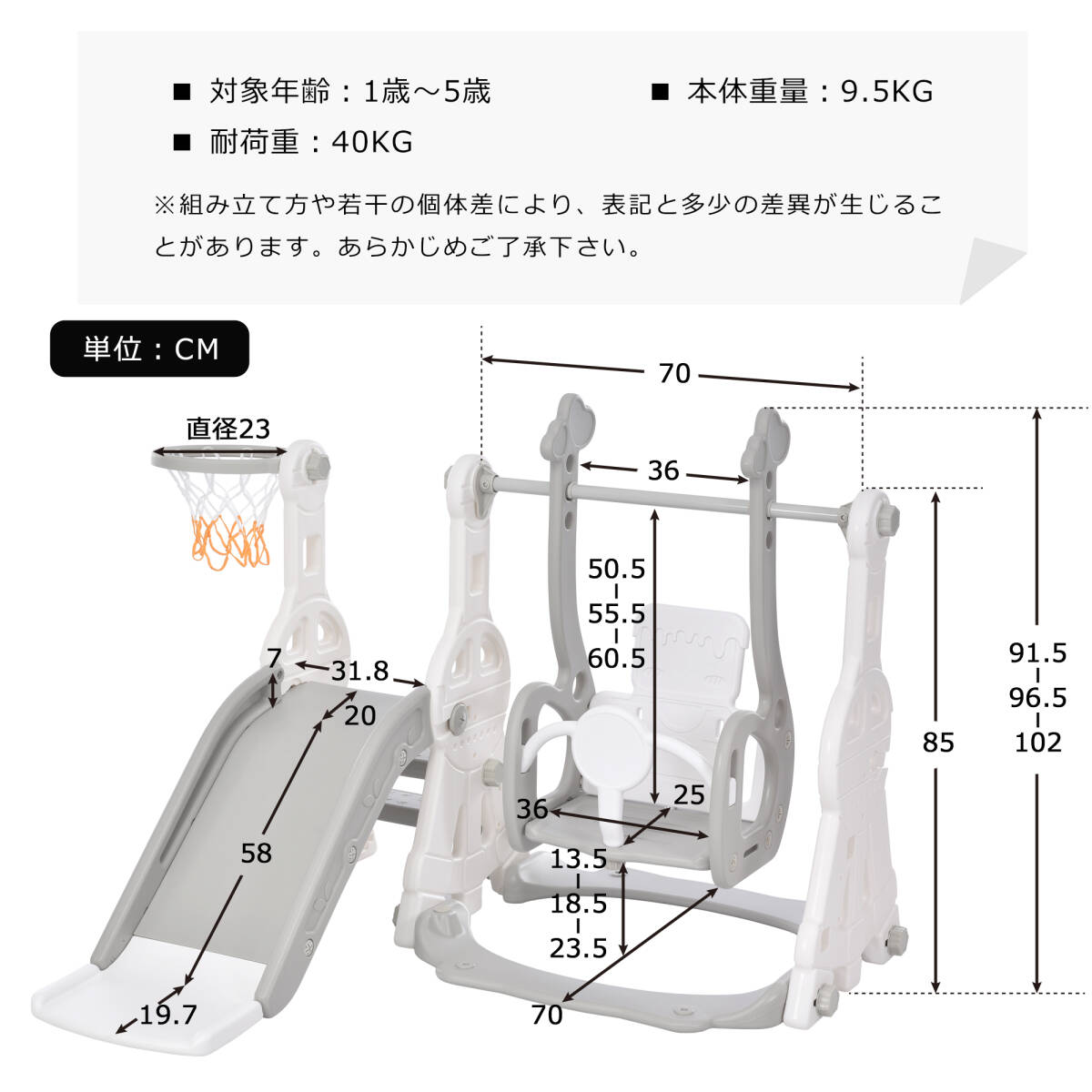 滑り台 すべり台 幼児用滑り台とブランコセット バスケットゴール ブランコ三段階調整可 遊具 室内遊具 耐荷重40kg 1~5歳