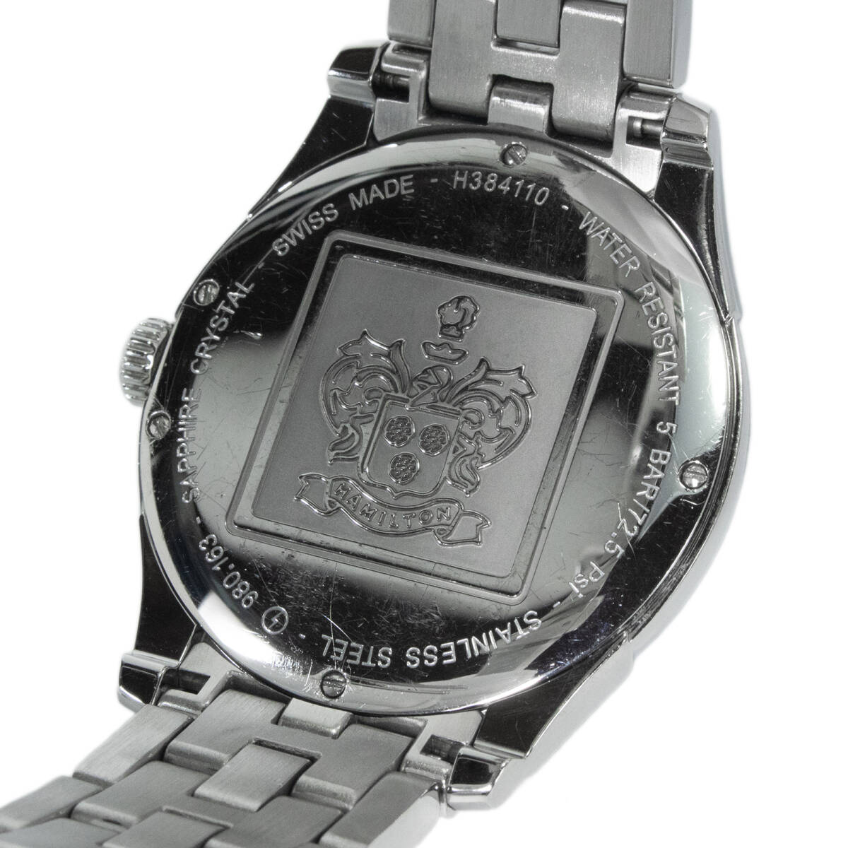 こちらは薄型のケースが腕に馴染む、ハミルトンの腕時計でございます。