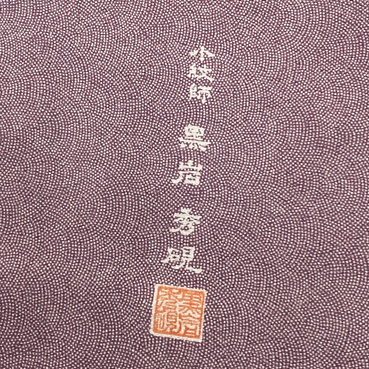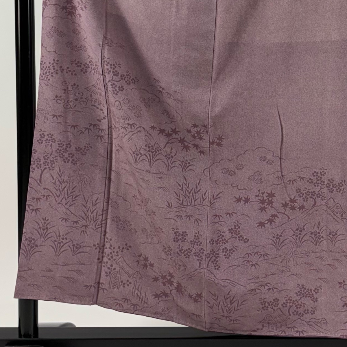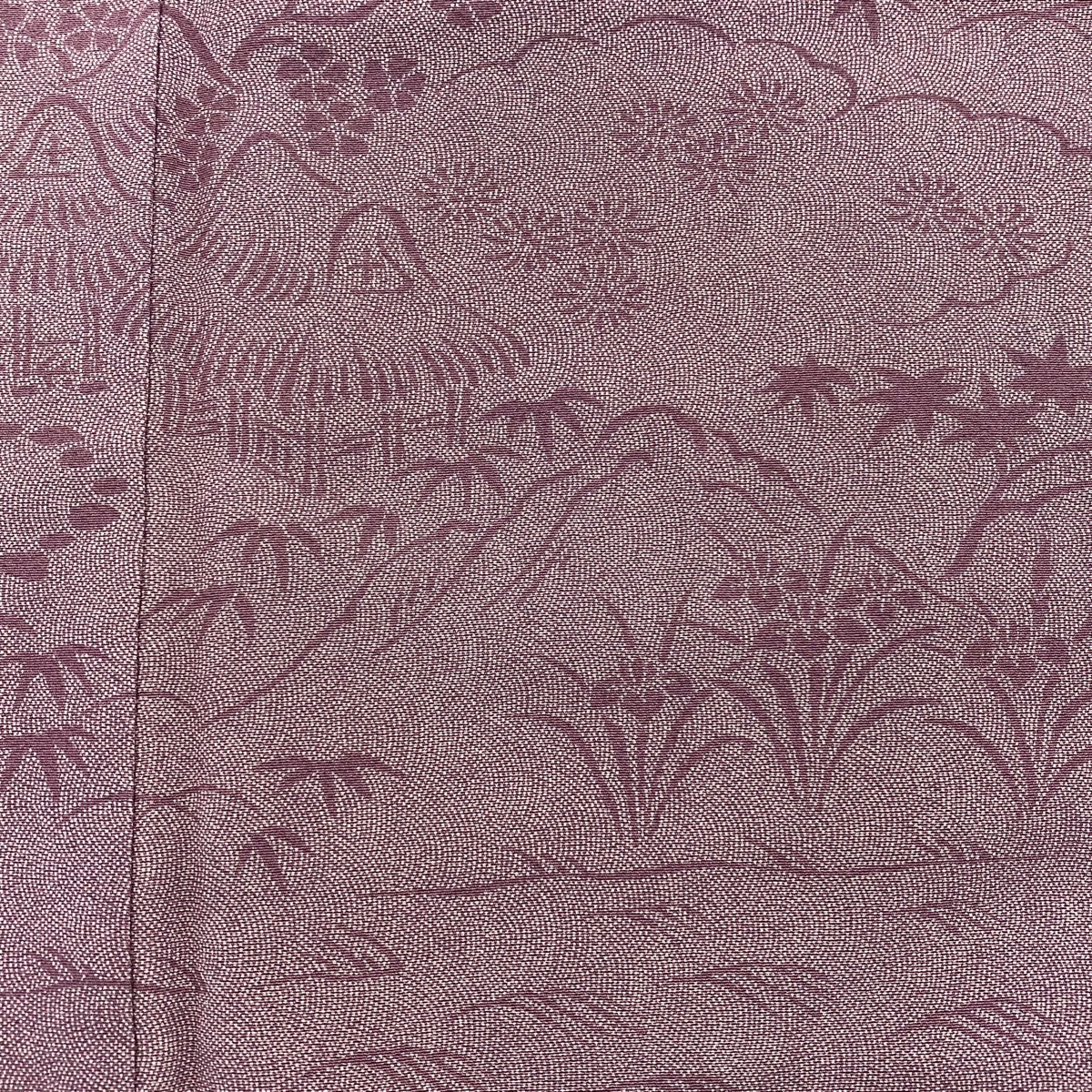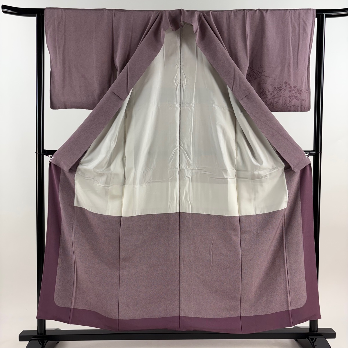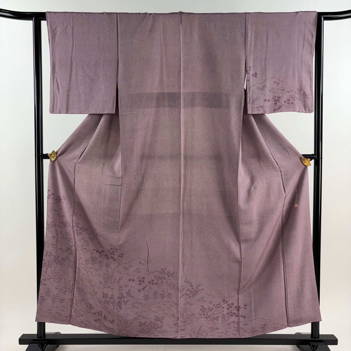 | 付下げ 名品 落款 家屋 草花 赤紫 袷 身丈155 裄丈62.5 S 正絹 【中古】 |