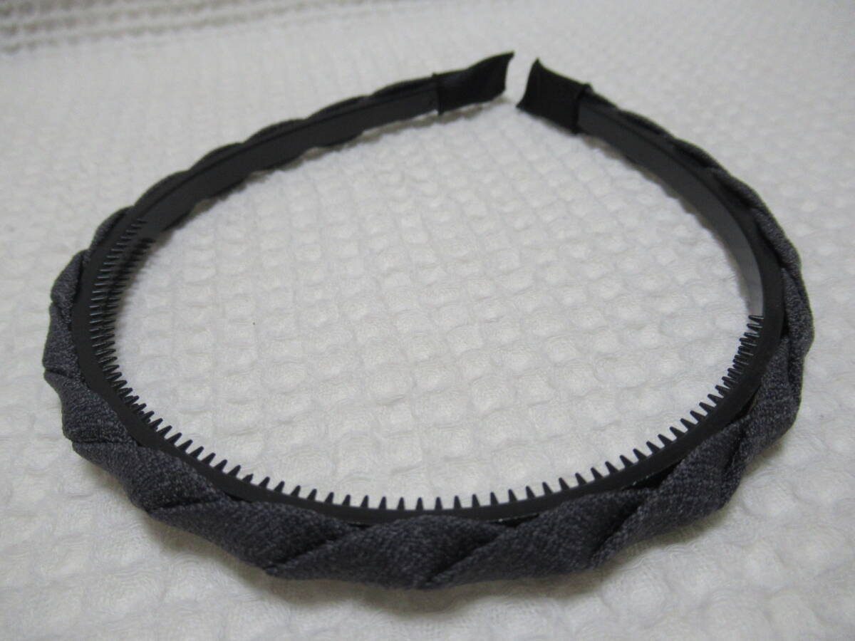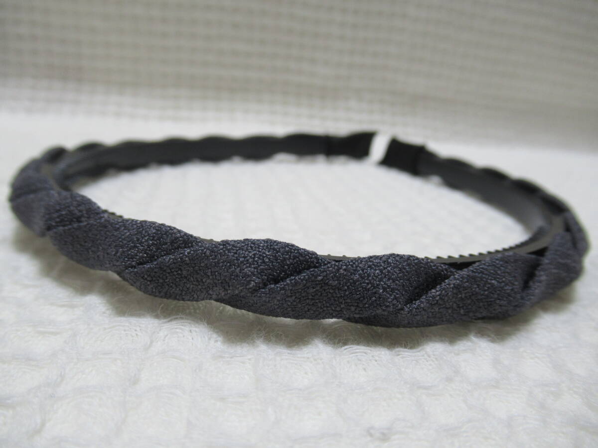グレー系色生地のナワアミ型 細いカチューシャ