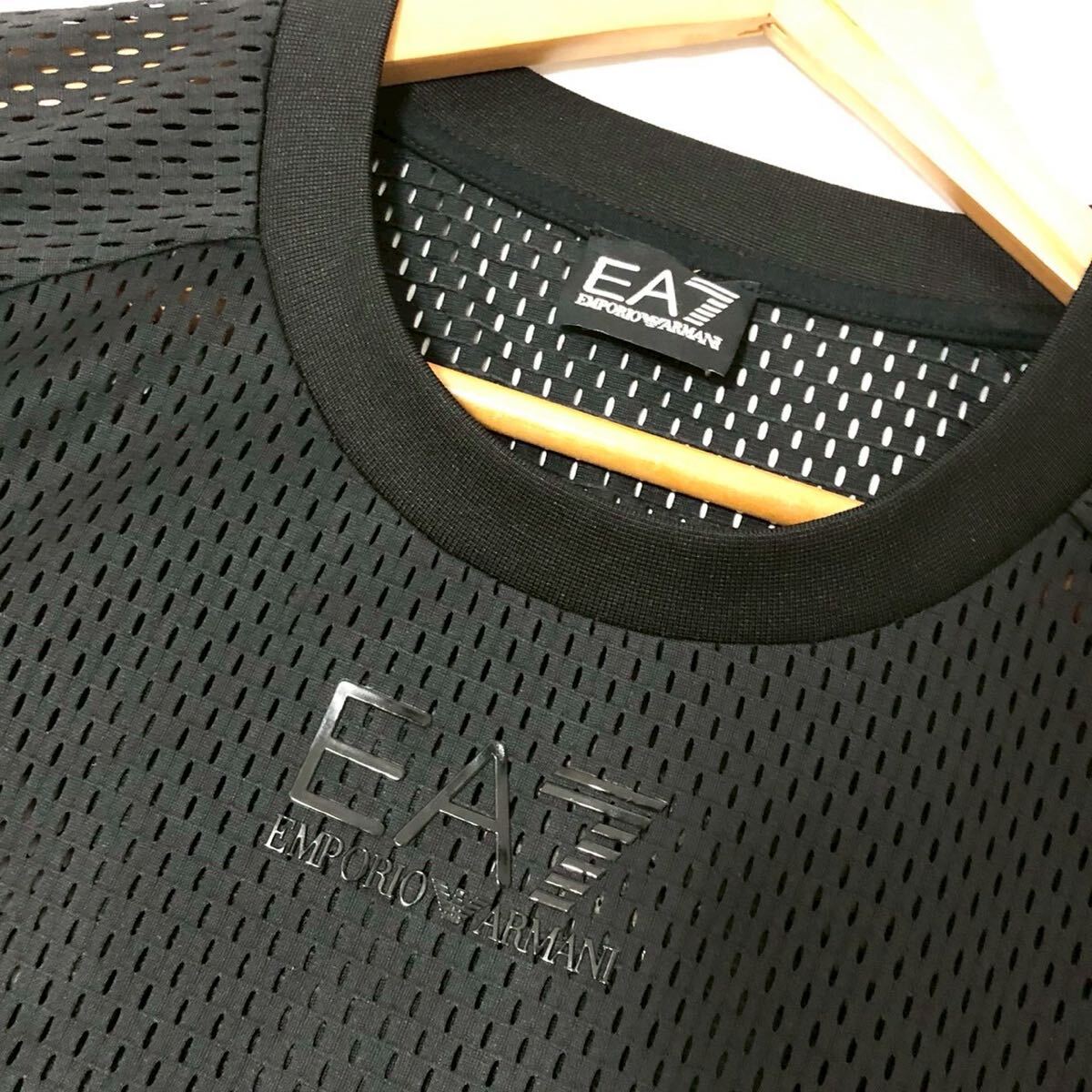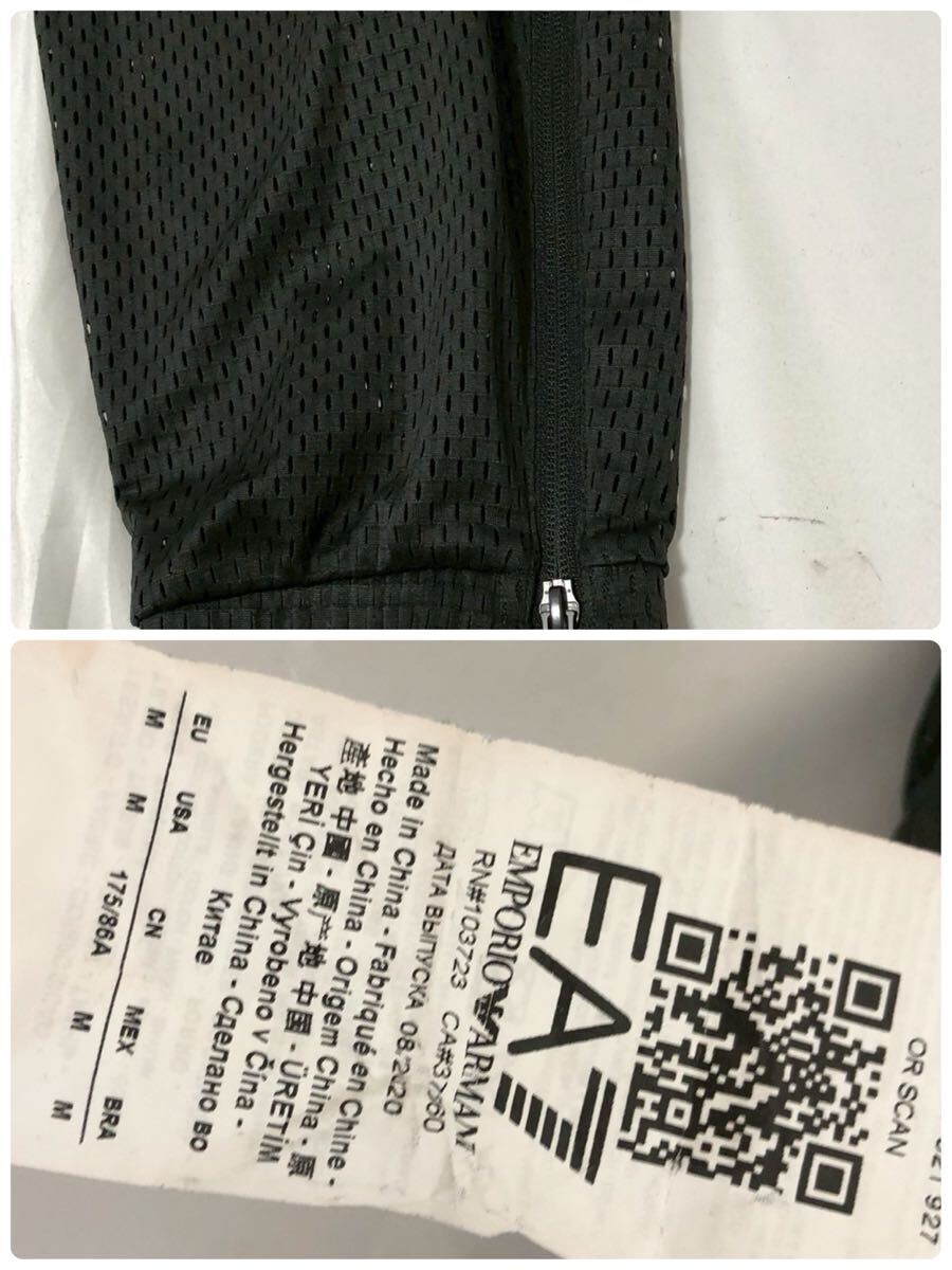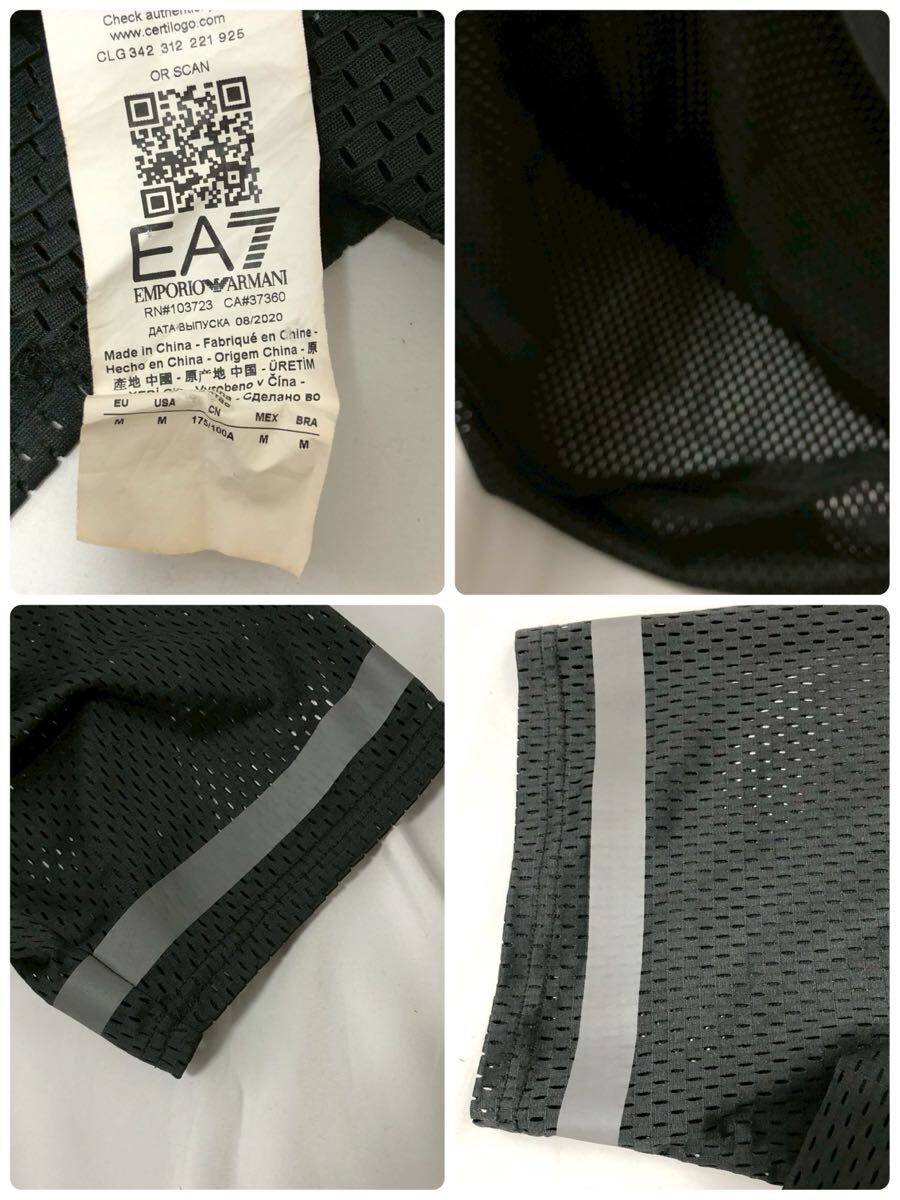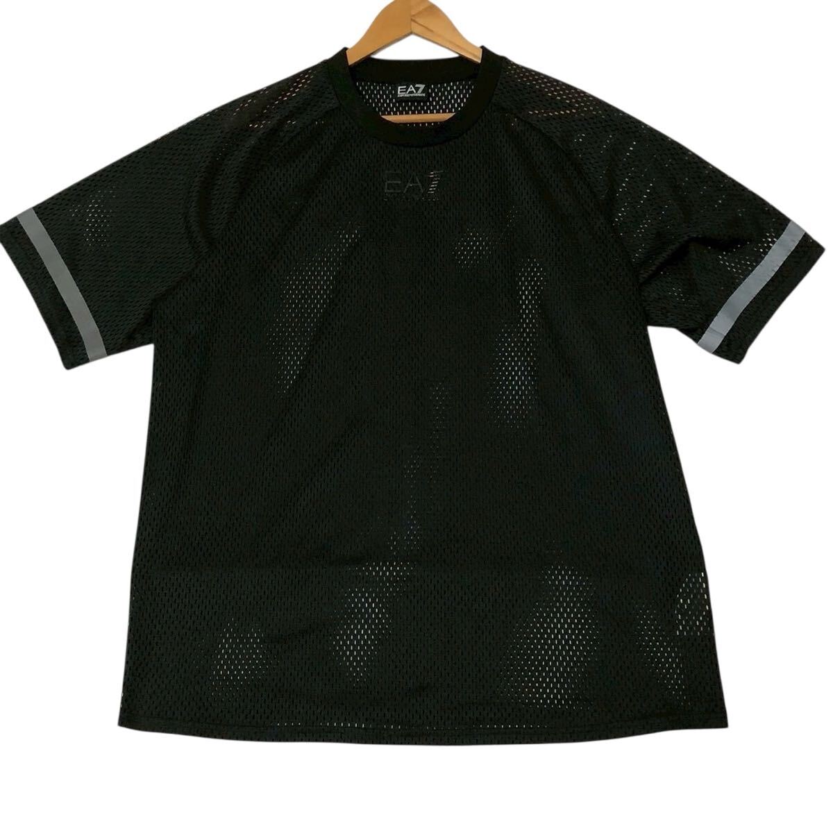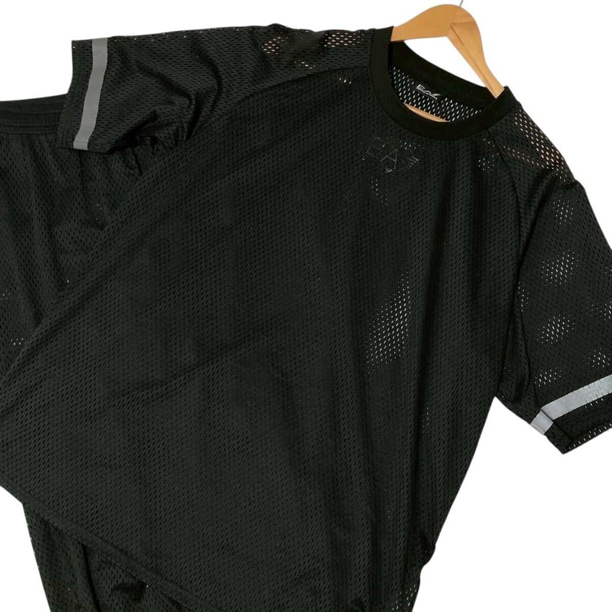 美品◎オールメッシュ生地◎EMPORIO ARMANI セットアップ トップス Tシャツ パンツ サイドジップ Mサイズ ロゴ 黒 EA7