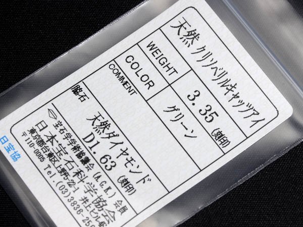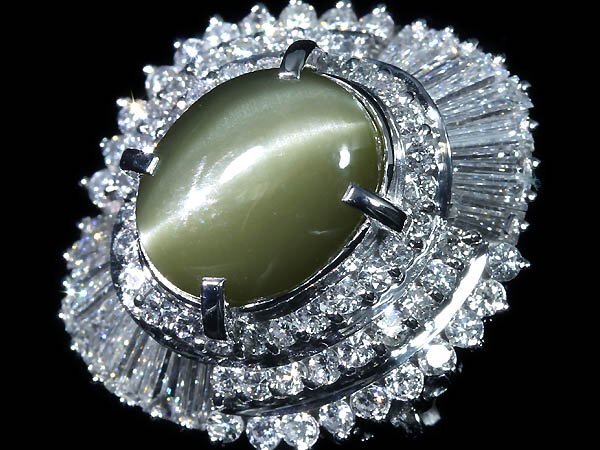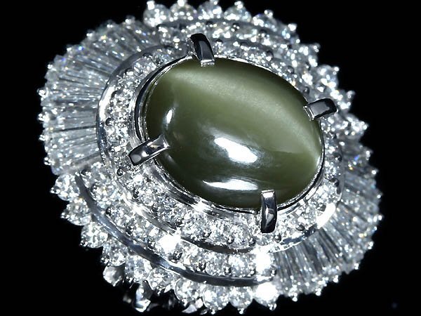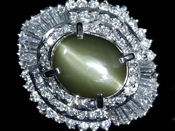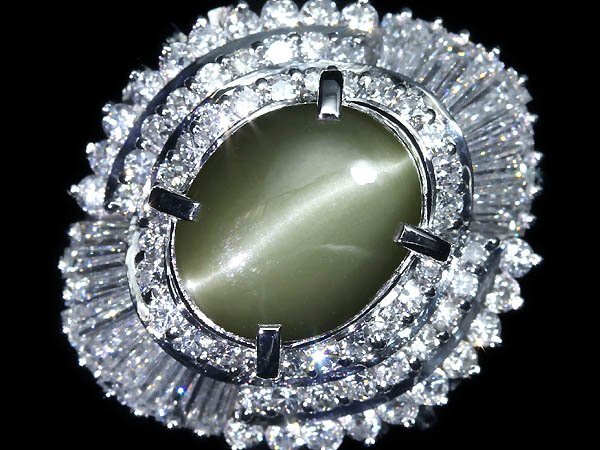 ◆安心の品質!!!【日本宝石科学協会】発行ソーティング付き!!! 豪華絢爛!!! 極上クリソベリルキャッツアイ 大粒3.35ctと、極上ダイヤモンド 総計1.63ctを贅沢に宝飾した、超高級リングをご紹介いたします!!! 艶やかなカボションボディにすらりと伸びたキャッツアイのラインが美しいこちら!!! 極上クリソベリルキャッツアイならではの深く上品なグリーンカラーの美しい輝きと妖艶なシャトヤンシーを、3.35ctの大粒サイズでご堪能いただける大変魅力的なお品でございます!!! 周囲には、1石1石が眩い煌めきを放つ極上ダイヤモンドを、総計1.63ctも贅沢に宝飾!!! 極上ダイヤ 総計1.63ctものボリューム溢れる輝きが、大粒の極上クリソベリルキャッツアイを華やかに引き立てています!!! 細部まで繊細に創り込まれたエレガントなデザインには、高級素材Pt900を使用!!! プラチナの質感が、より一層の高級感を演出します!!! こちら格安での出品となっておりますので、この機会是非お見逃しなく!!! ◆こちらの商品はお客様の希望がある場合のみ、評価をつけております。 評価希望のお客様は、オーダーフォームの要望欄にてお知らせくださいませ。 |
