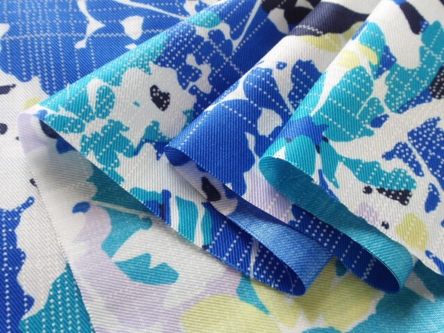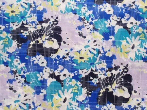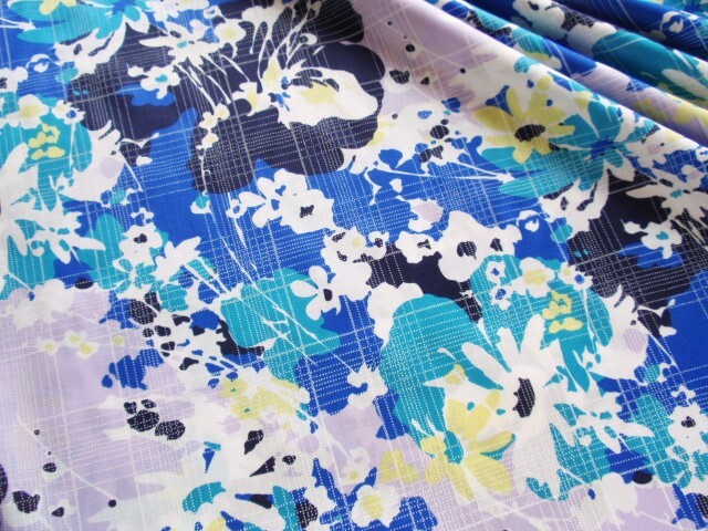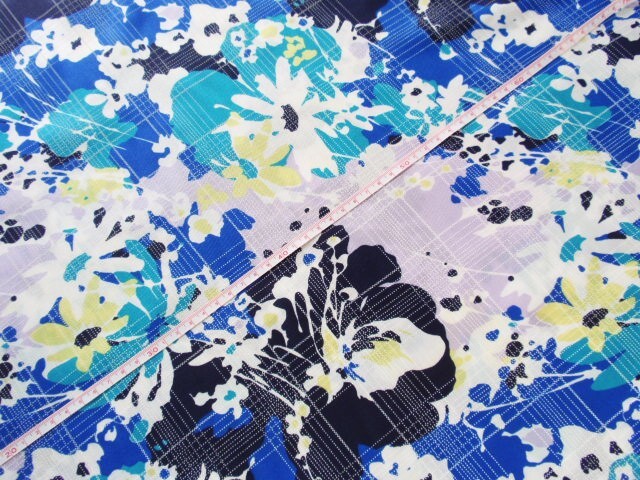 即決♪4m南国フラワー ブルー系 花柄 ハイビスカス 格子柄 インテリアプリント ポリツイル♪