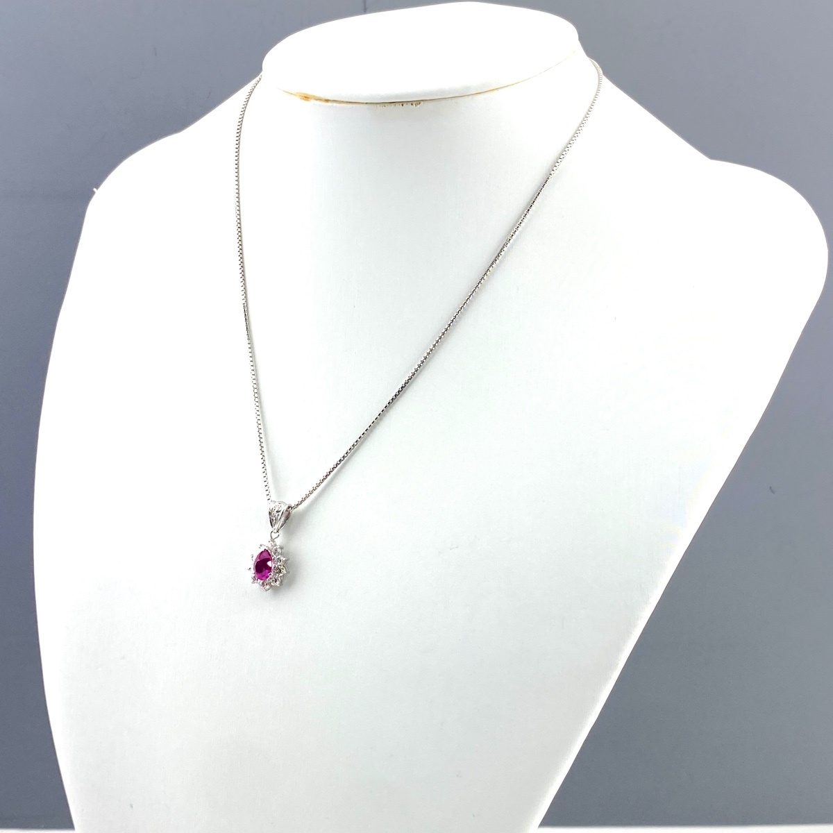 | トップ:Pt900、チェーン:Pt850 ルビー:0.97ct、メレダイヤ:0.47ct 中古品の為、若干のキズや汚れがございます。 |