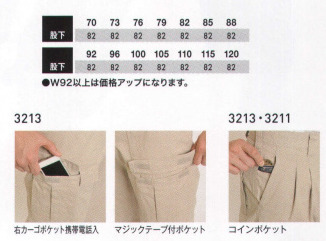 ※同じシリーズ、年間又は秋冬対応で《3210長袖ツナギ、3216長袖ブルゾン、3215長袖シャツ、3211ツータックパンツ、3213ブッシュパンツ》が在庫ある分については出品されています