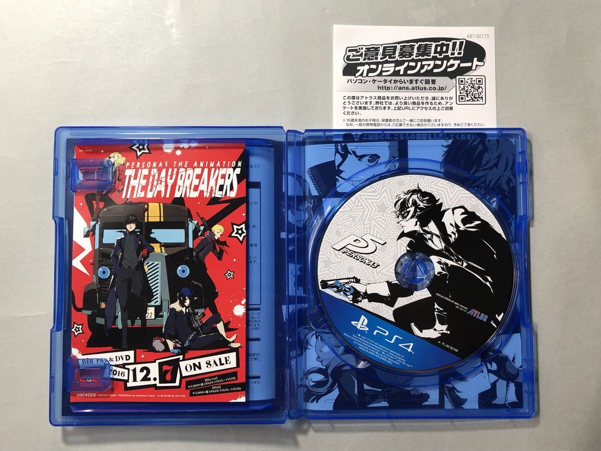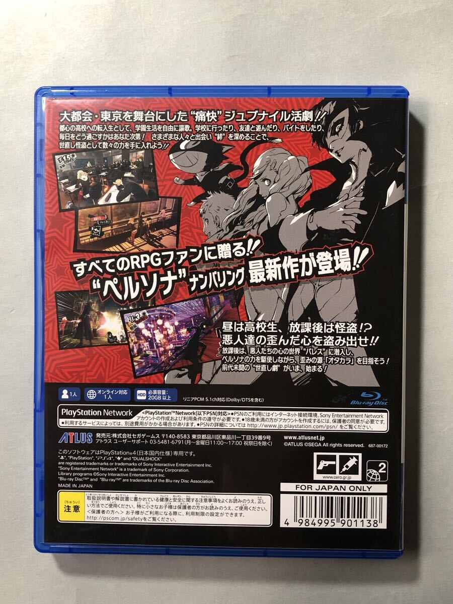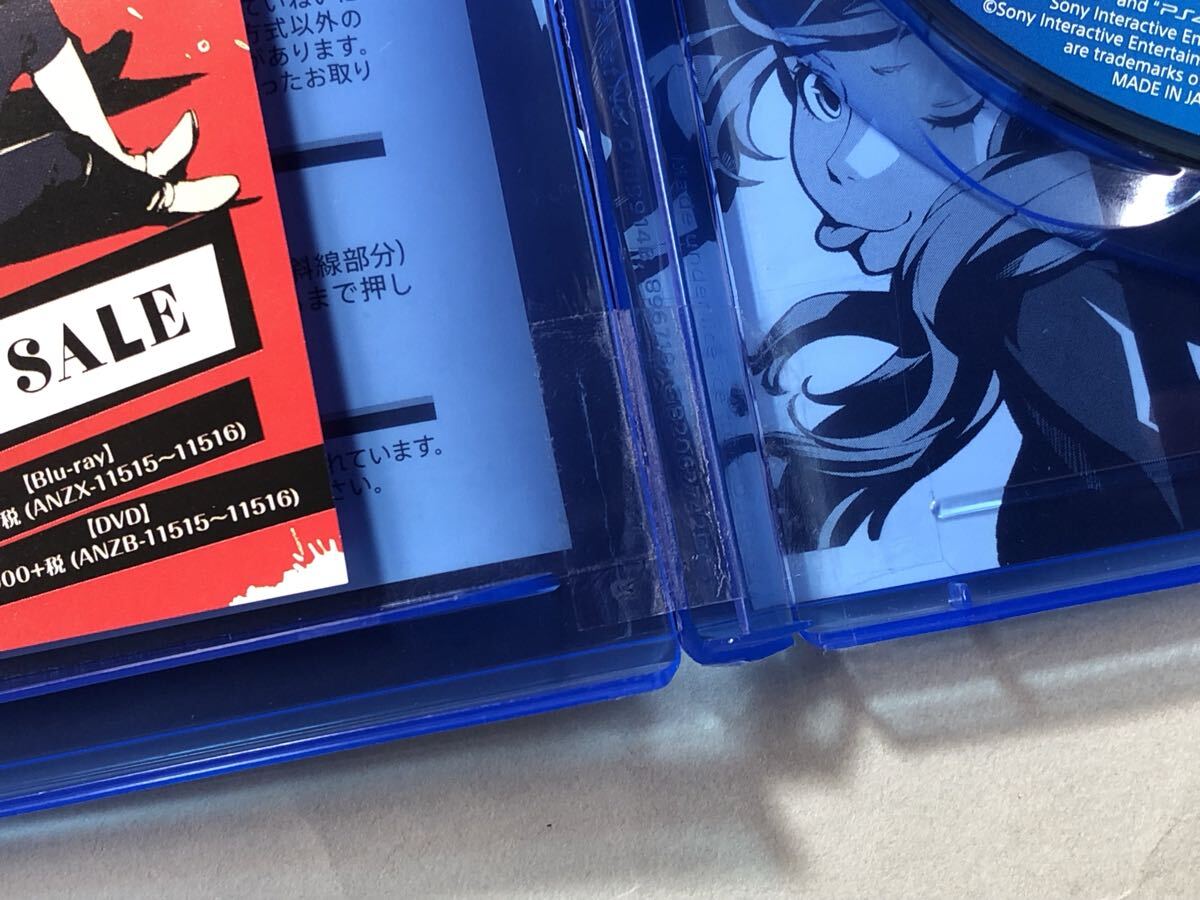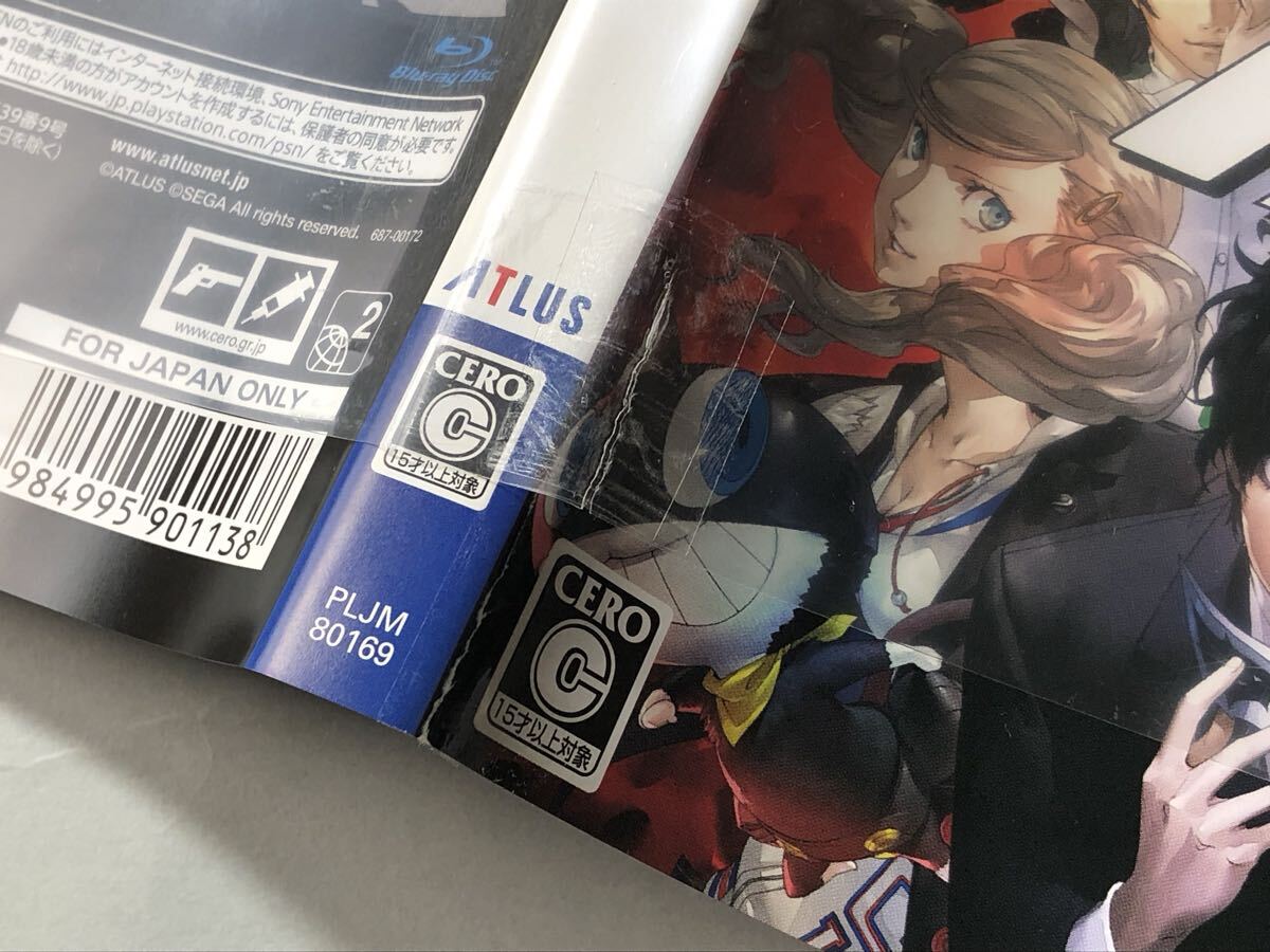 PS4フト ペルソナ5「大都会・東京を舞台にした“痛快”ジュブナイル活劇!」アトラスです。ケース背表紙下側に台紙を含めて破れがありテープ貼り補修されています。ケースに擦れ、細かな傷、線傷、点状や線状のへこみ跡があります。ディスクのデータ読み取り面に目立つ傷や汚れなくきれいです。起動、動作確認済みです。写真のモノが全てです。新品をお探しの方や神経質な方の入札はご遠慮下さい。ノークレーム・ノーリターンで、お願いします。入札よろしくお願いいたします。 D06-422-091607