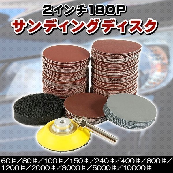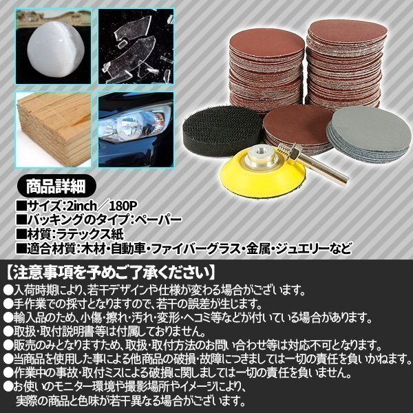 180ピース 2インチ サンディングディスク ウェットドライサンドペーパー ソフトフォームパッドとバッカープレート付き 1/4インチシャンク