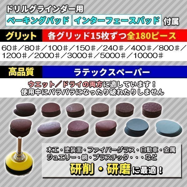 ドリルグラインダー用ベーキングパッドとインターフェースパッド付き180ピース