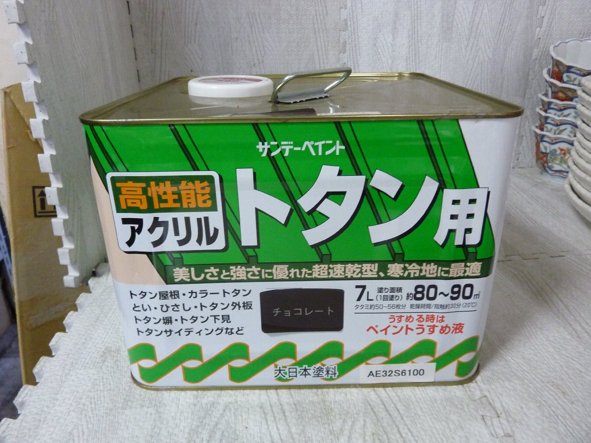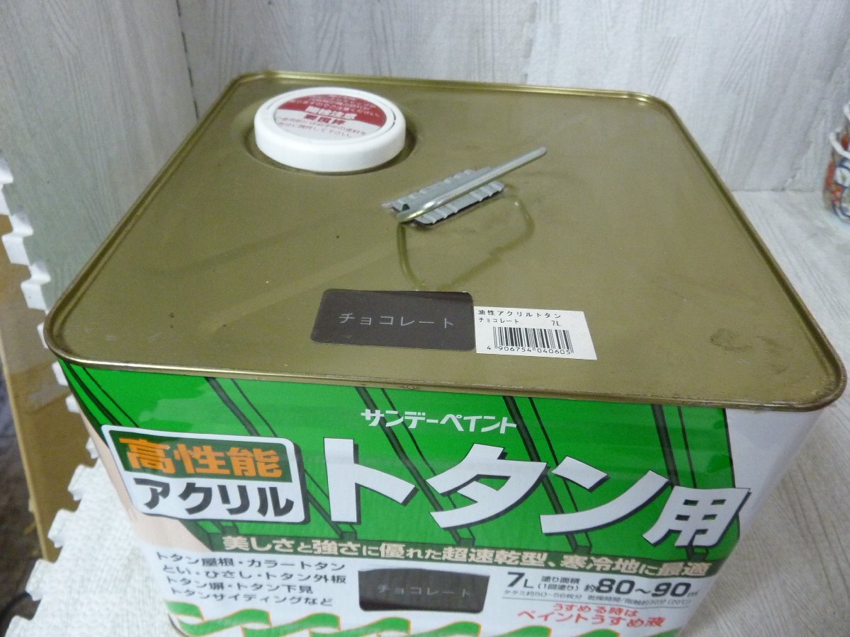 アウトレット品 サンデーペイント 高性能 アクリルトタン用 塗料 チョコレート 7Lのご紹介です。 アウトレット品につき缶にキズや汚れ等ございます。 【塗り面積(1回塗り)】約80m2~90m2(タタミ約50~56枚分) 【乾燥時間】 表面乾燥:約3.5時間(20℃) 約7時間(冬期) 【用途】 屋外トタン部 トタン屋根、とい、ひさし、カラートタン、トタン塀、トタンサイディング、トタン下見など ご注意 ・コールタールが塗ってある上には塗らないでください 【特長】 ・耐候性がとくに優れており、つやを長期間保持し、ヒビやハガレを生じません。・色彩が鮮明。トタン板、カラートタンへの密着力も 優れています。・塗りやすく、刷毛さばきも軽い。・短時間で乾くので作業効率がよく、天候変化による影響も少なくてすみます。 【うすめ液】 ペイントうすめ液(用具洗いも) ★出品中の商品は、店頭でも販売しております。 店頭で売れた場合には期日に関わらずオークションを早期終了させていだきます (ご入札があった商品は直ちに店頭からお下げしておりますが、稀に入れ違いで売れてしまう場合もございます。ご了承くださいませ) 当社のオークションは返品・交換・キャンセル等は一切お断りさせて頂いております。充分ご検討の上ご入札下さいませ。 | |