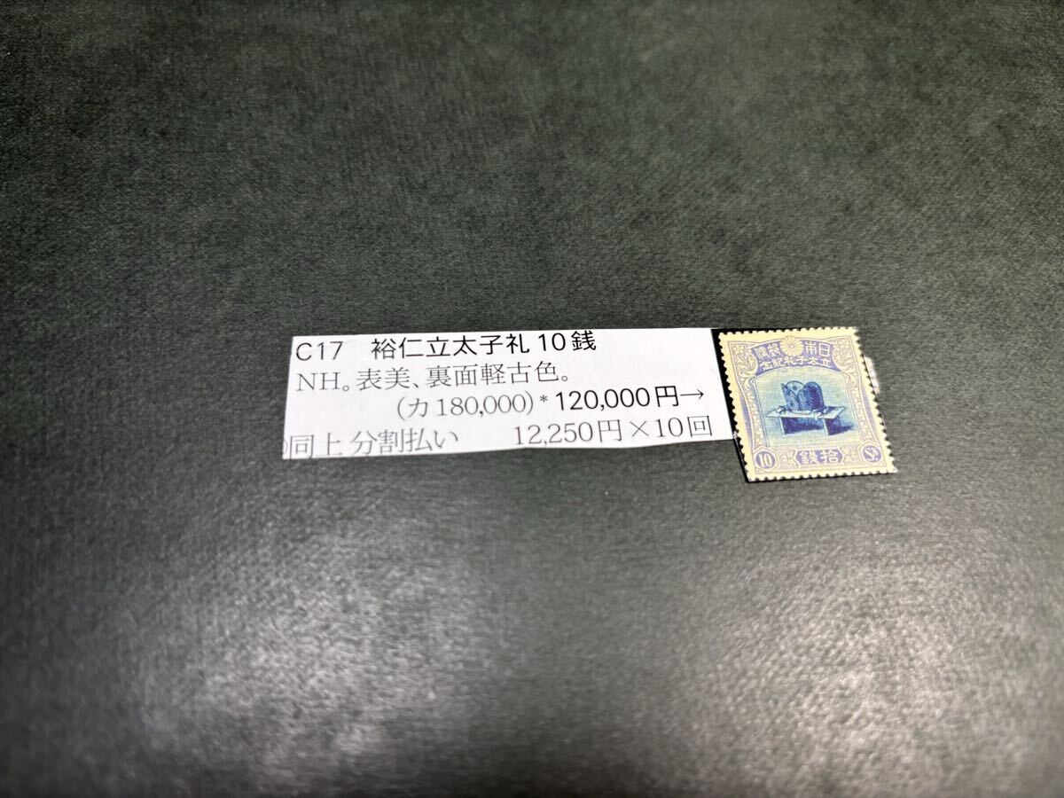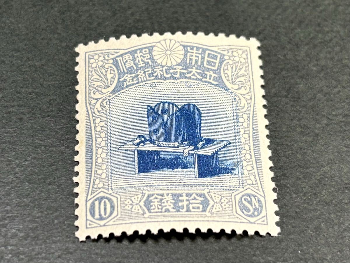 購入220,000円 裕仁立太子礼 10銭 日本切手収集のステータス・シンボル「かんむり」 発行枚数がわずか8万6,000枚と、当時としても極めて少ない数 日本
