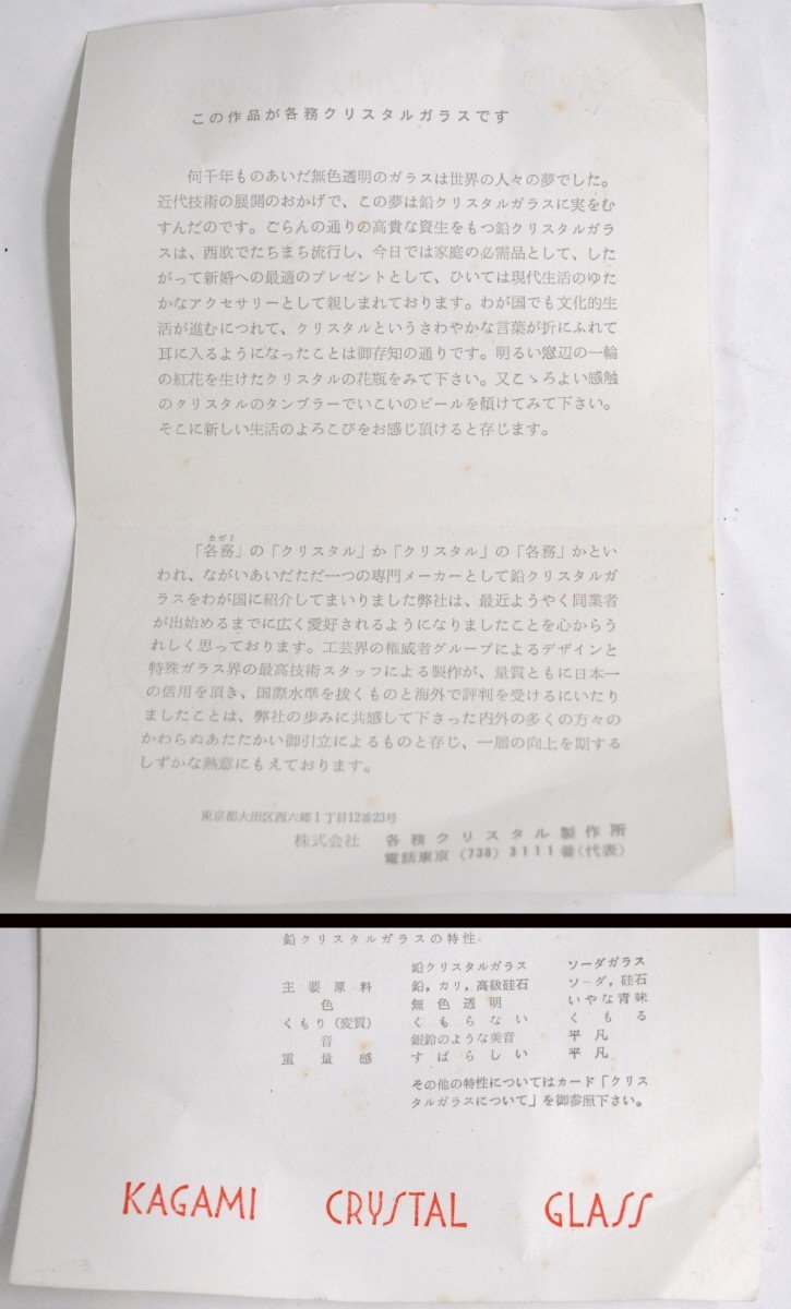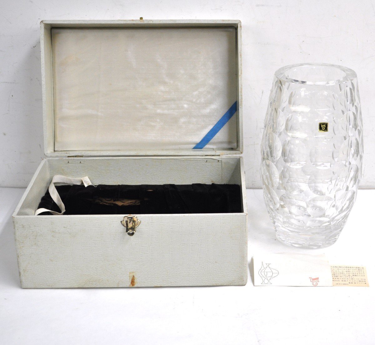 各務クリスタルの花瓶が入荷致しました。 本体は写真に写らない微細な傷がある程度で、 比較的きれいな状態ですが、 外箱は経年による汚れが目立ちます。 詳しい商品状態につきましては写真よりご確認ください。 この機会に是非ご検討宜しくお願い致します。 【詳細】