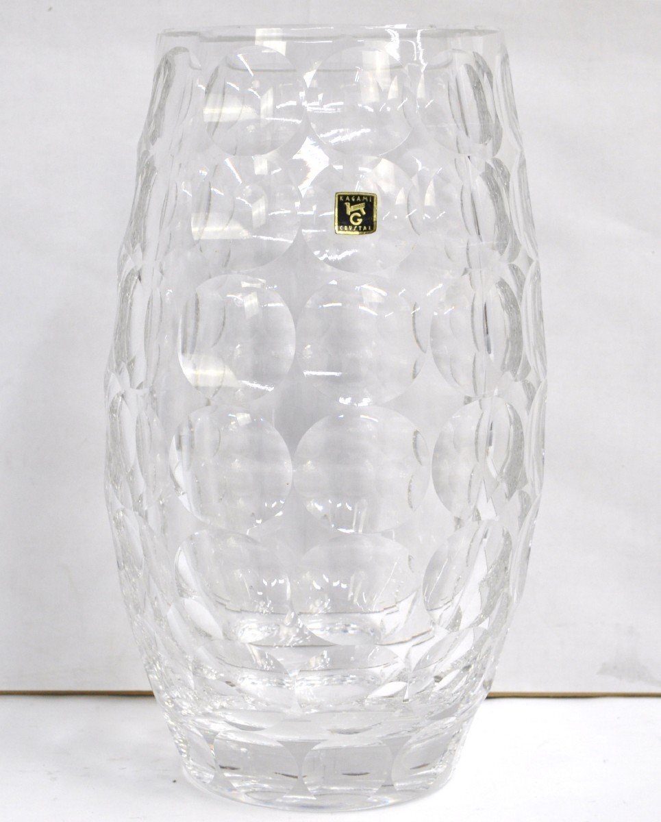 | ▼商品名 | 各務クリスタル 花瓶 カガミクリスタル フラワーベース 約直径16×高さ28cm 花器 ガラス クリスタルガラス 箱付 レトロ |