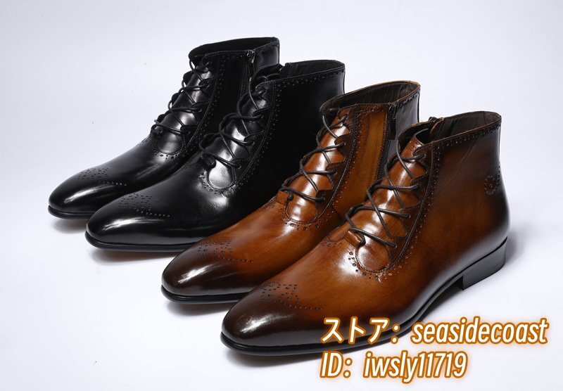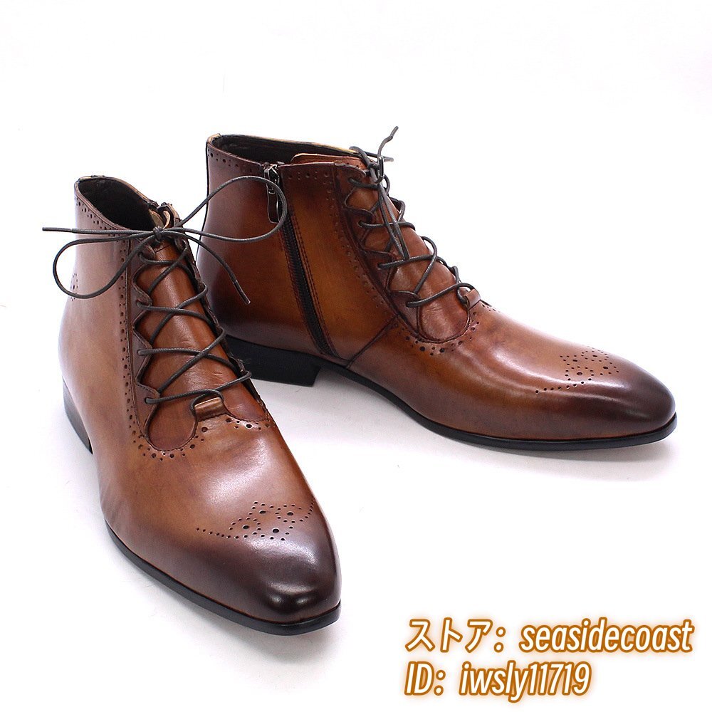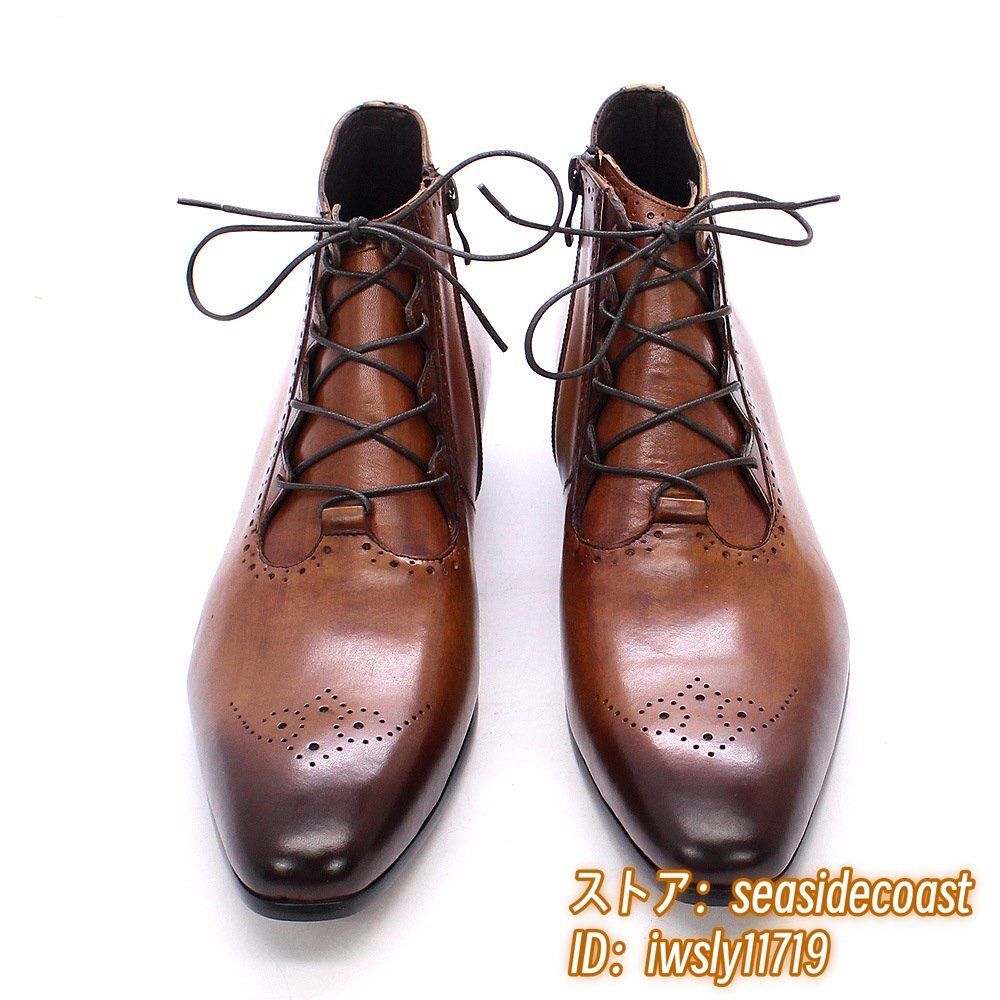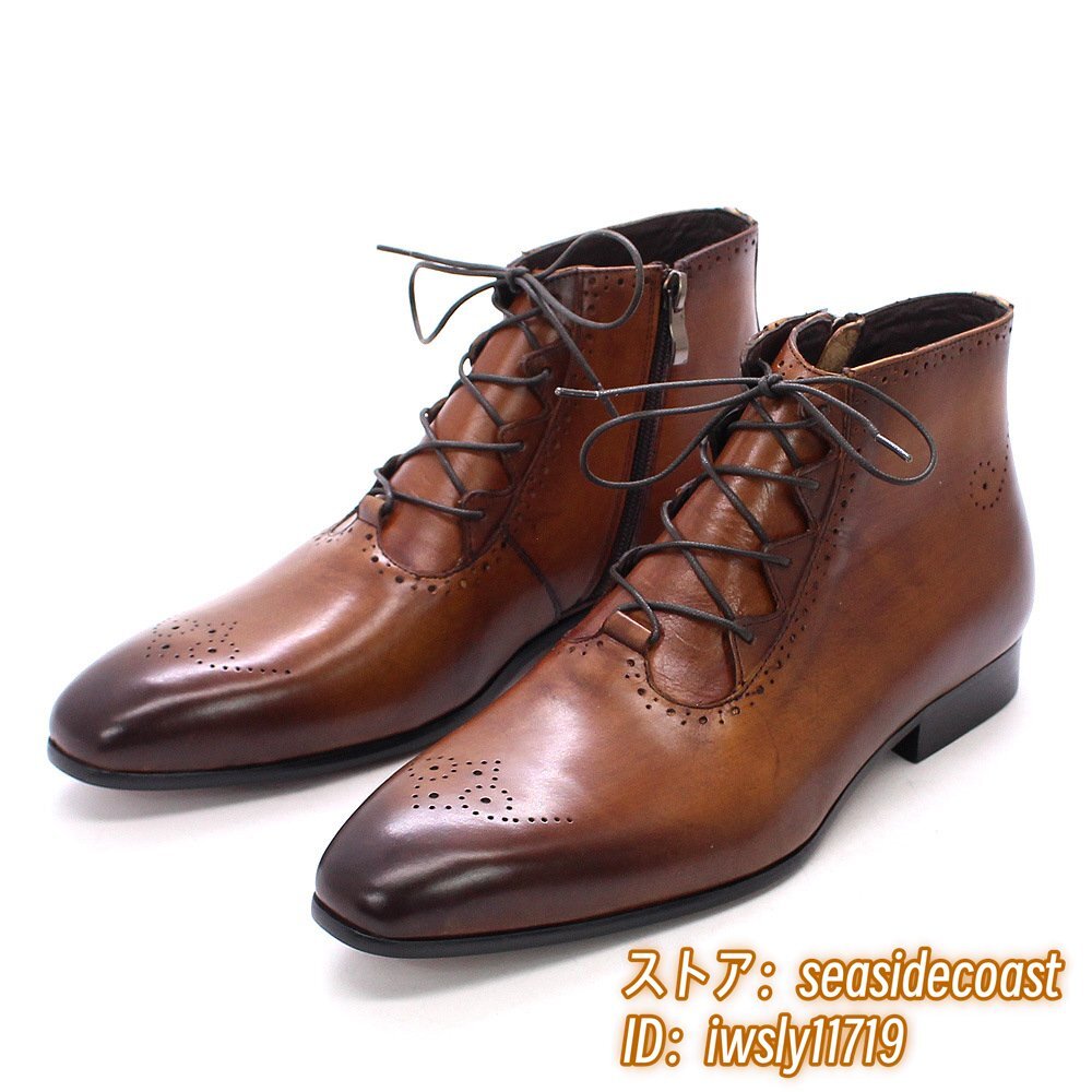 定価12万*マーティンブーツ 本革 レザーブーツ メンズ レースアップ 職人手作り ショートブーツ 皮靴 高級牛革 ハイカット ブラウン 28.0cm