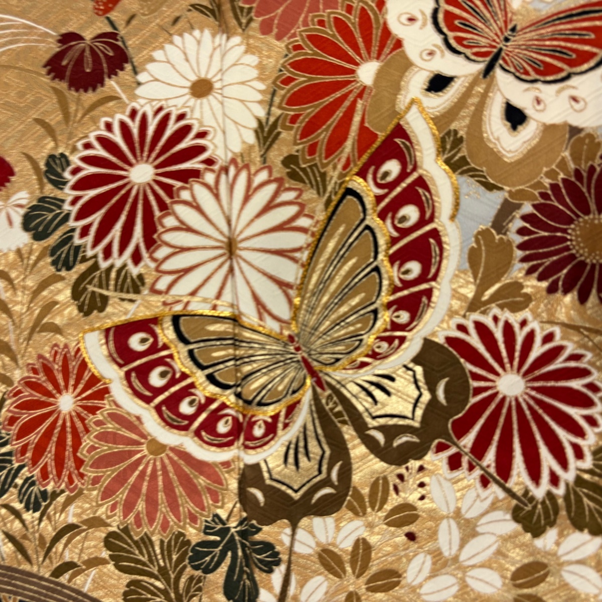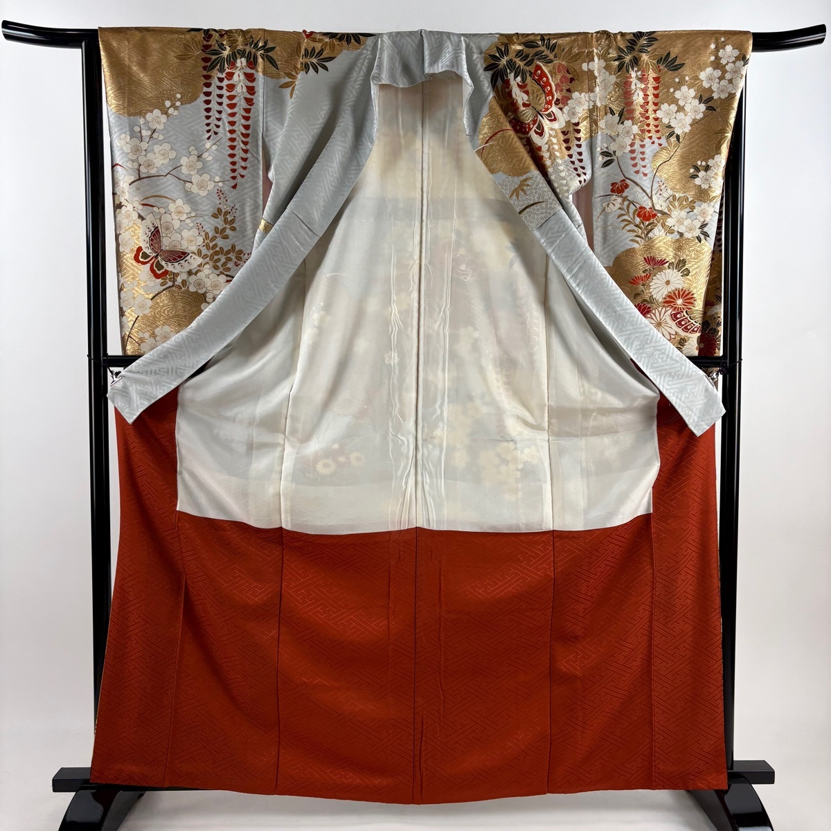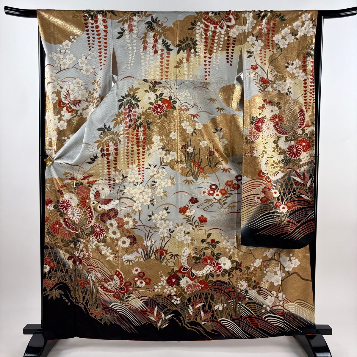| 振袖 秀品 蝶 菊 金糸 金彩 灰色 袷 身丈164 裄丈65 M 正絹 【中古】 |