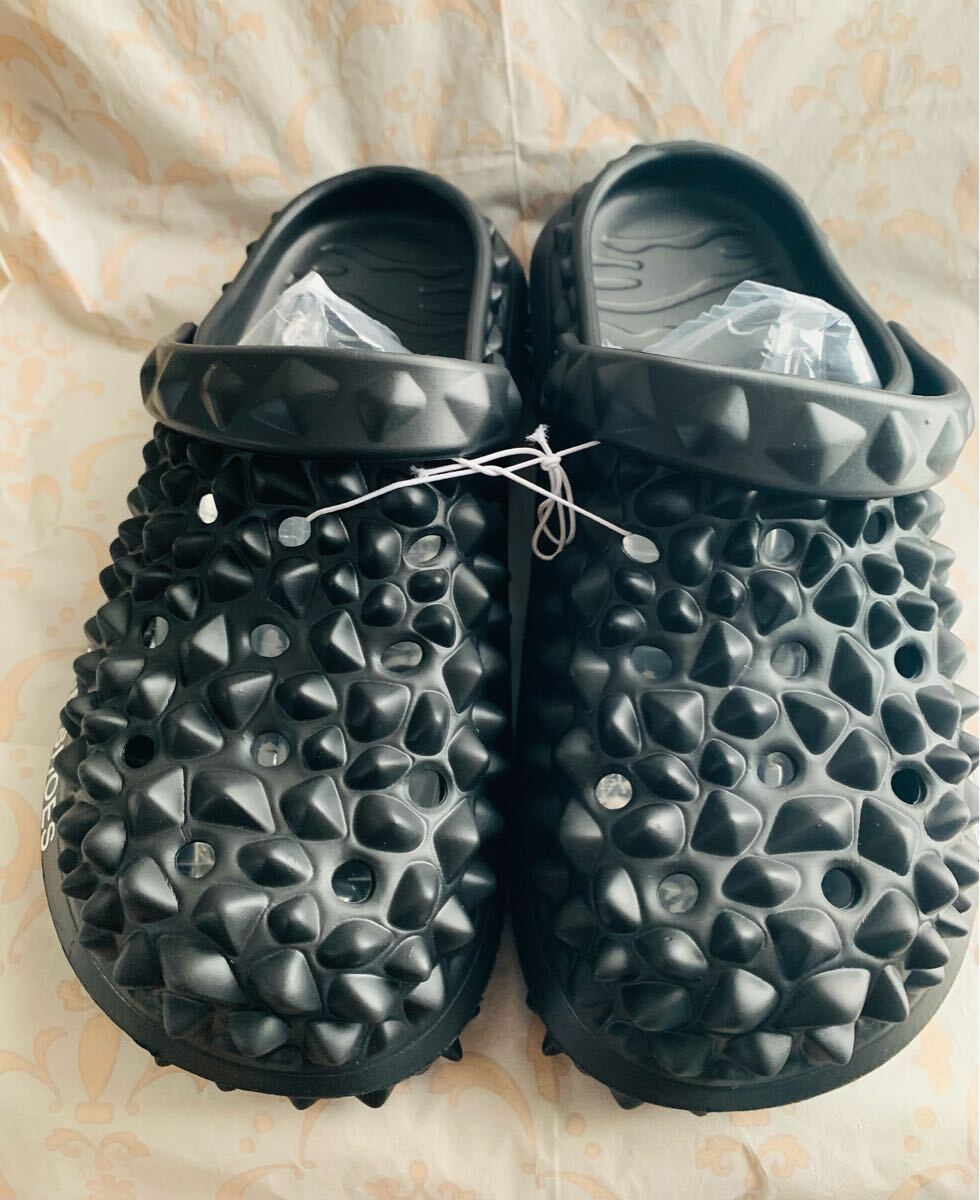 メンズ スリップオン ホールシューズ - 二重履き可能 カジュアルビーチシューズ EVA素材、通気穴付き&クッションソール 春/夏/秋用 アウトドア 足袋 トレンディなデザイン 耐久性抜群 ユニセックス 夏の必須アイテム ブラック