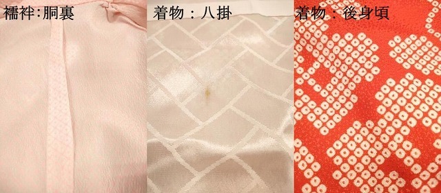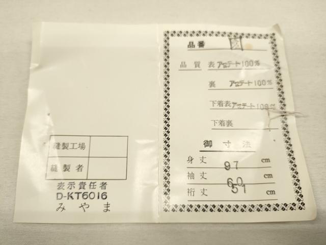 【祝着】 身丈 97cm(肩から) 裄丈 49cm(肩上げ 0cm) 袖丈 60cm 縫込み 2.5cm 袖幅 26.5cm 前幅 17cm 後幅 22cm 着物縫いこみ 内揚げ 0cm (腰上げ 0cm) 裄 お袖側 約1.5cm 身頃側 約1.5cm 《 サイズについてはこちら 》 |