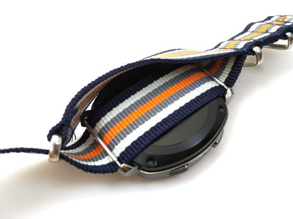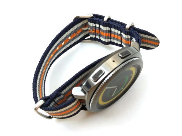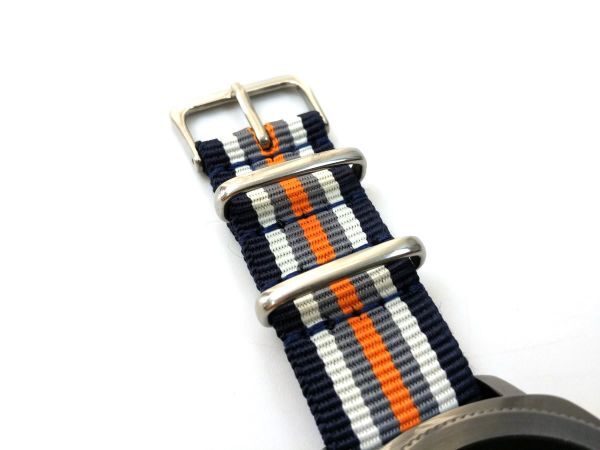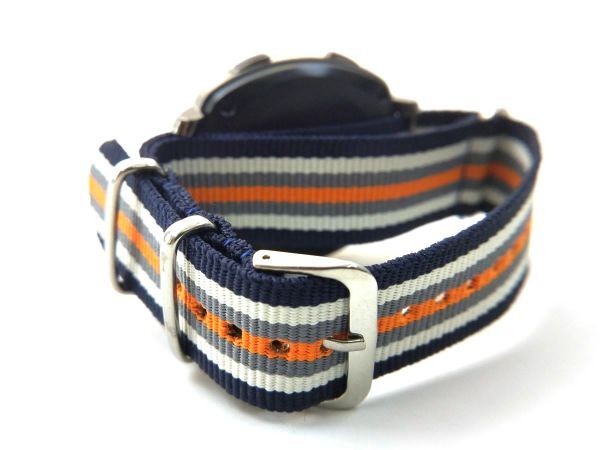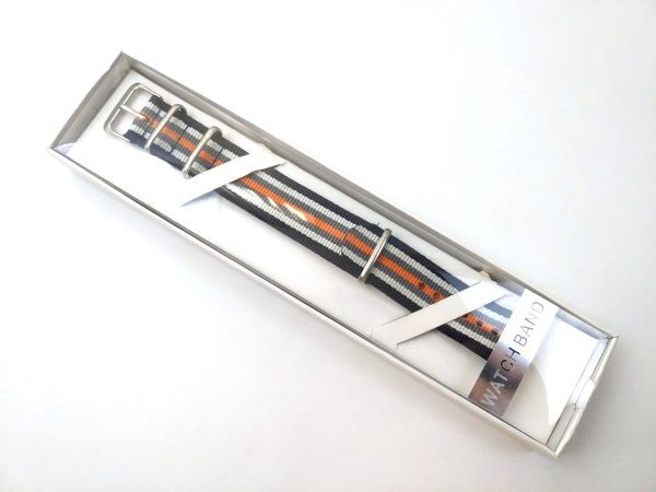 ナイロン製ミリタリーストラップ 布ベルト natoタイプ 腕時計 ネイビー白グレー オレンジ ストライプ 20mm