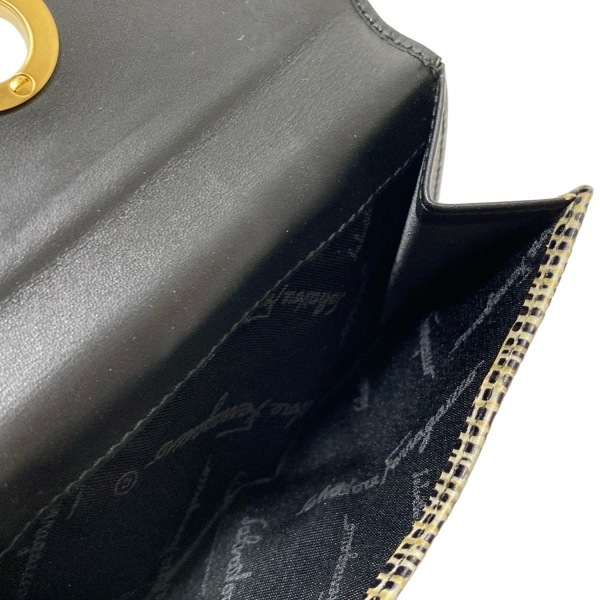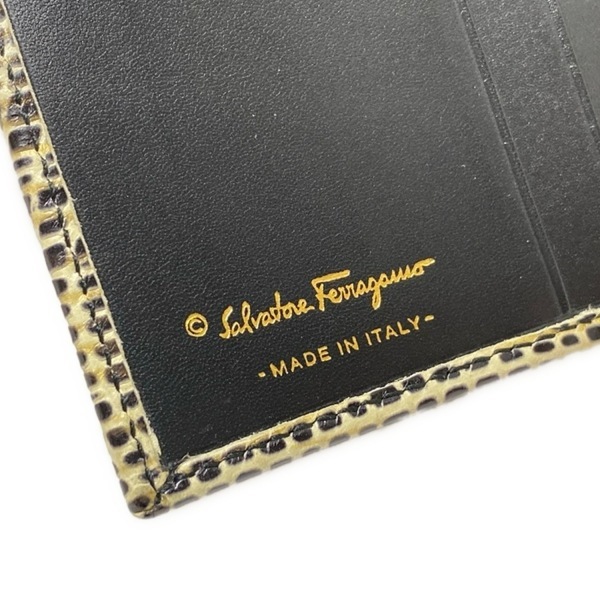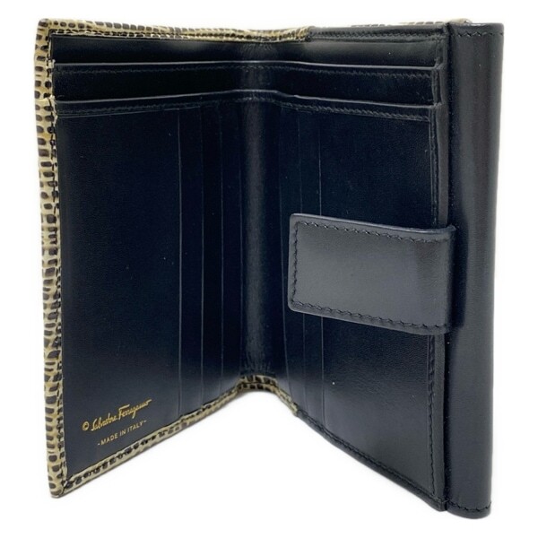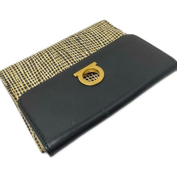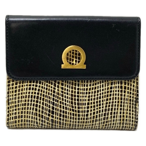 サルバトーレフェラガモ FERRAGAMO/SalvatoreFerragamo Wホック財布 ガンチーニ レザー 黒×アイボリー×ライトブラウン 型押し加工 財布