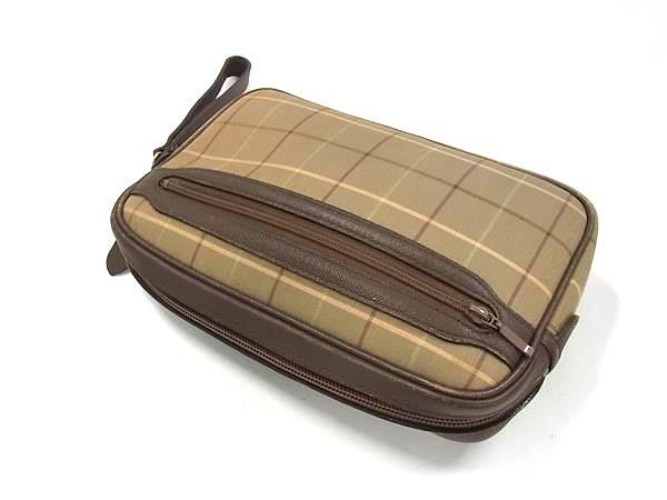 1円 ■美品■ Burberrys バーバリーズ キャンバス×レザー クラッチバッグ セカンドバッグ メンズ レディース カーキ系 FT1157