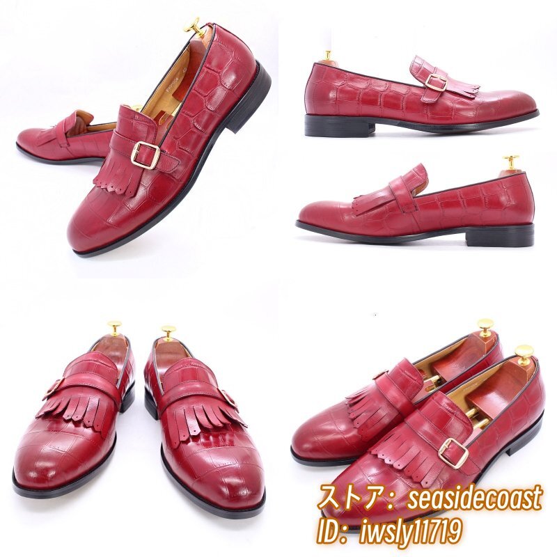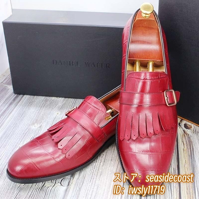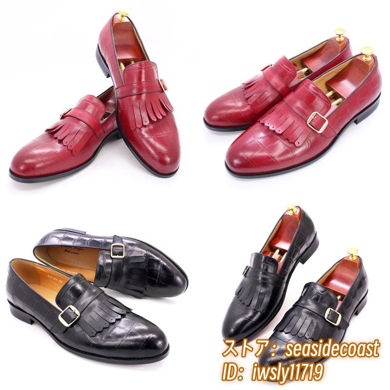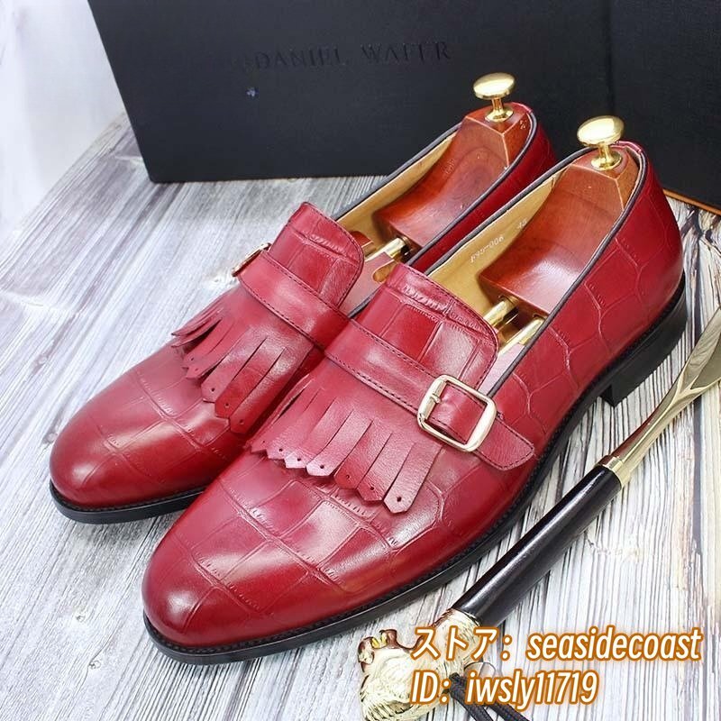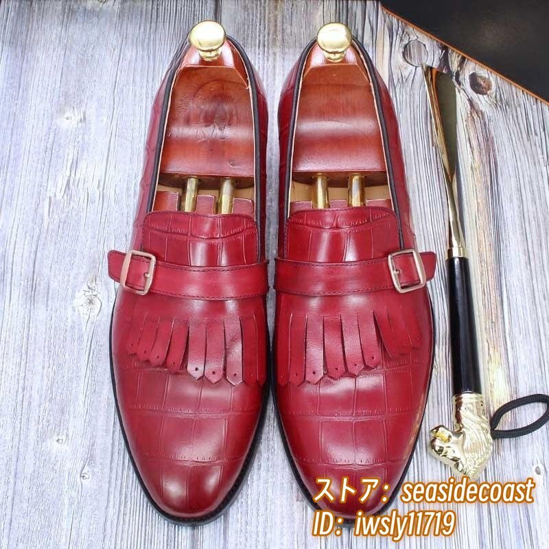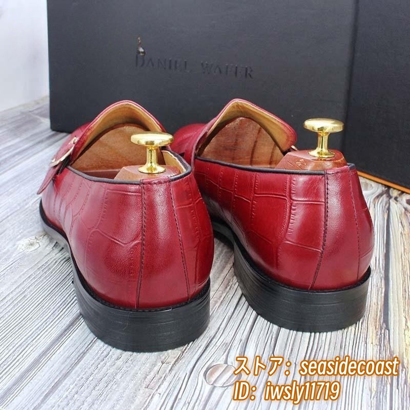 定価9万超★超希少 メンズ ビジネスシューズ 本革レザーシューズ 職人手作り モンクストラップ 紳士靴 牛革革靴 結婚式 冠婚葬祭 赤 26.0cm
