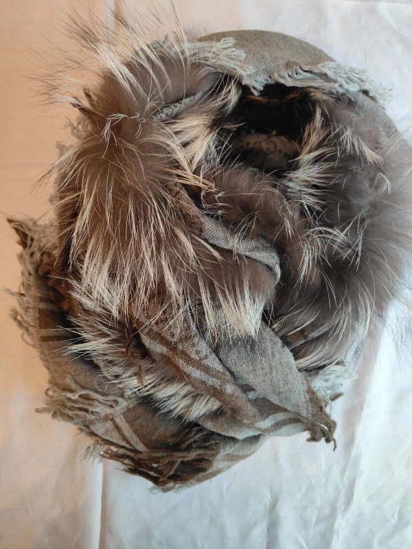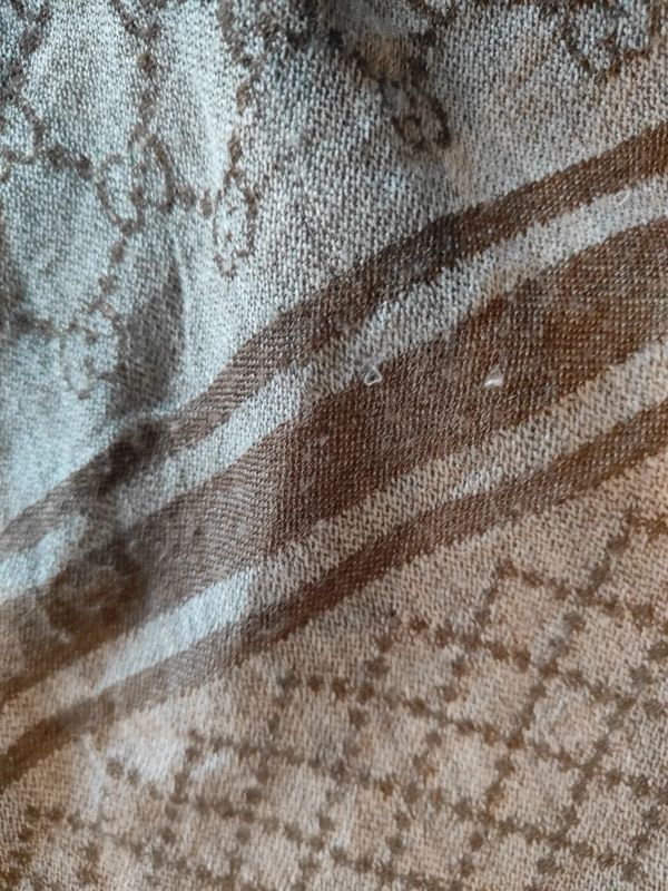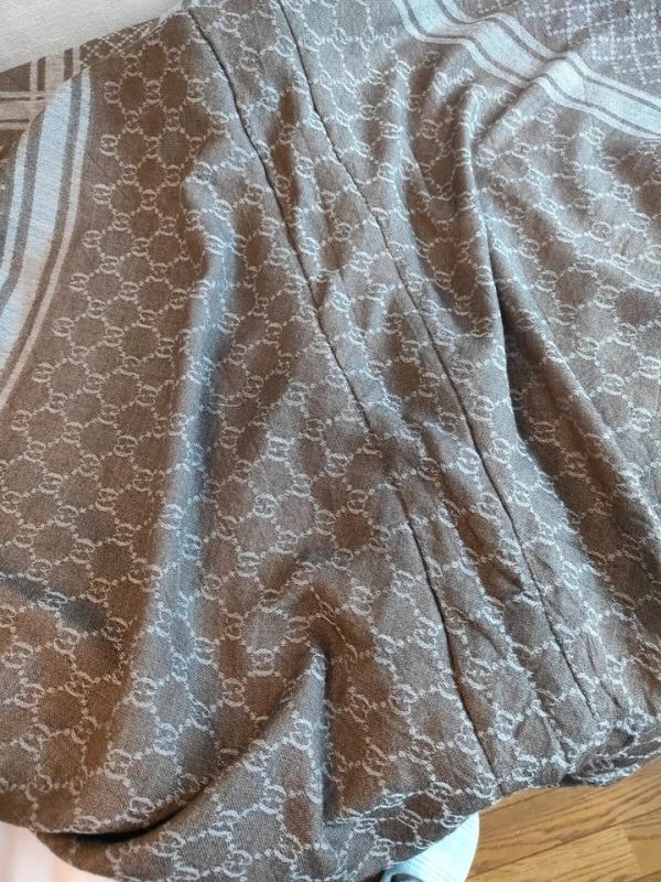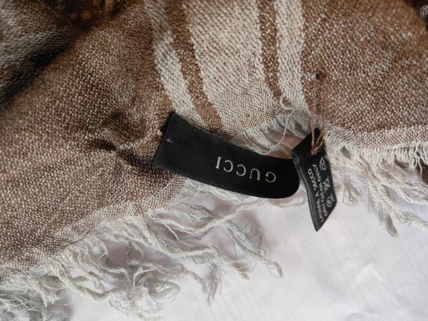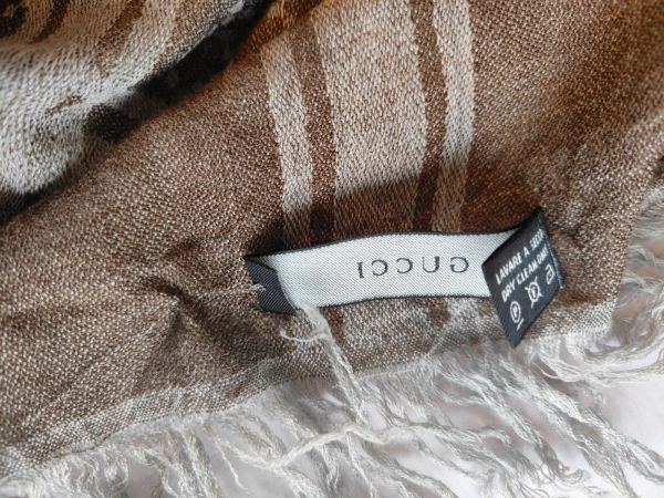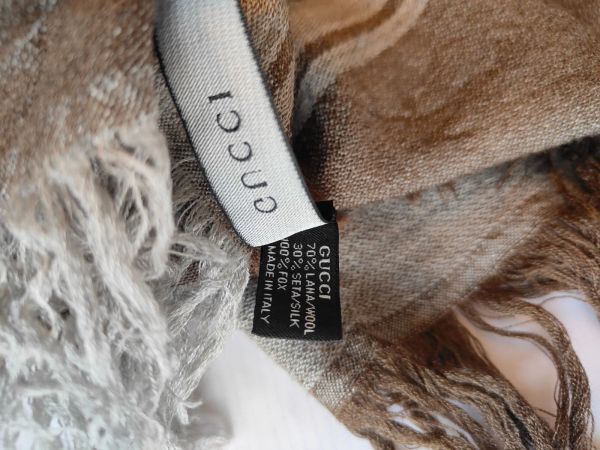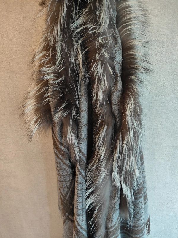 GUCCI グッチ レディース ブラウン ウールスカーフ GG トータルパターン フォックスファー付 ポンチョ ケープ