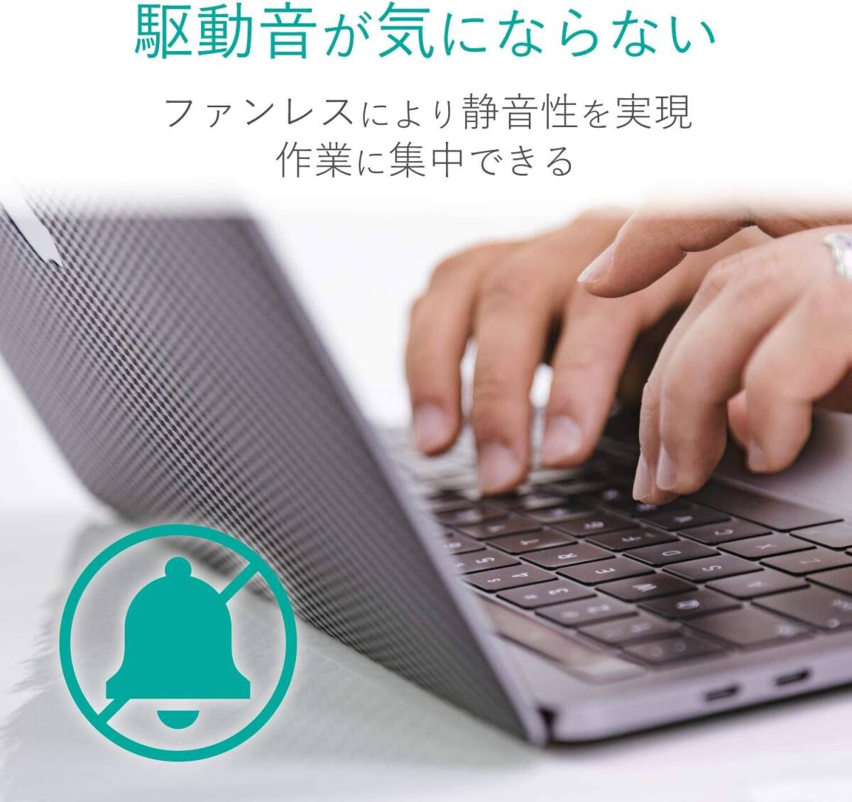 本製品は、ボディに高い熱伝導性による放熱性に優れたアルミ素材を採用し、ファンレスで静音性を実現しています。 また、アルミの特徴を生かした堅牢性も持ち合わせています。