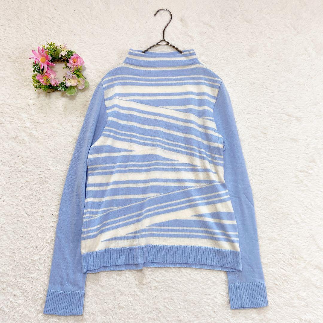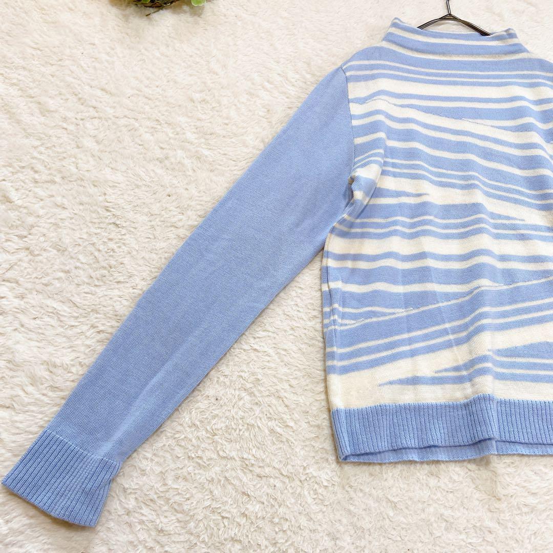 74-15 -大特価ー ウール100%★日本製 【セシオセラ】 マーブル柄 ニット セーター (M) CECI OU CELA レディース ハイネック 水色 ホワイト
