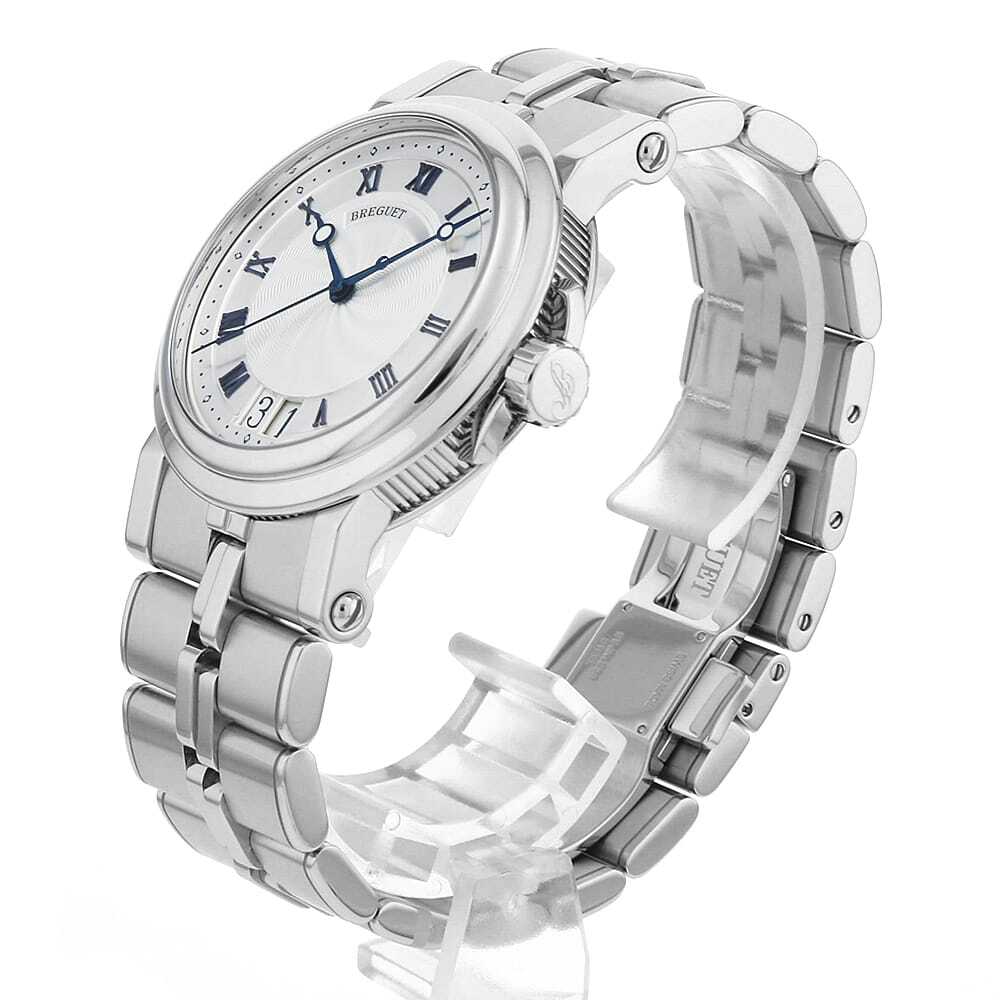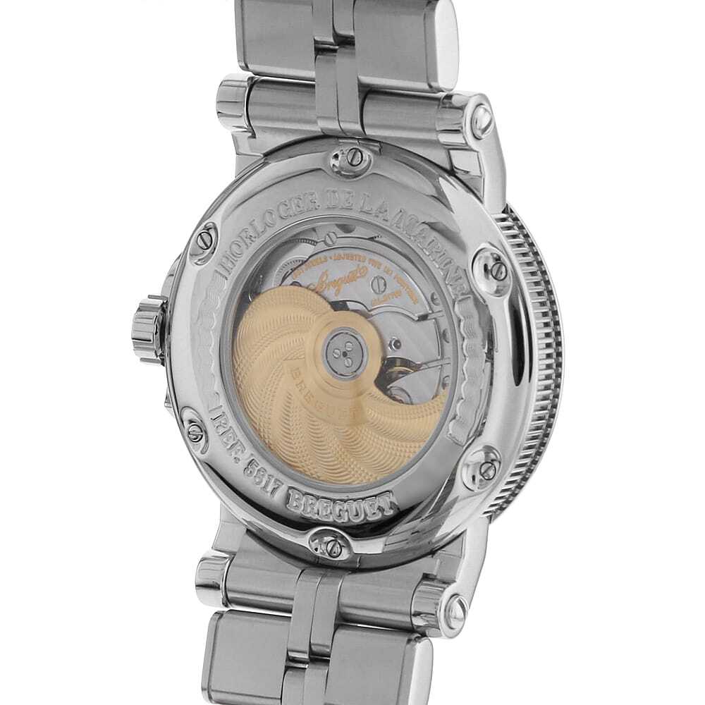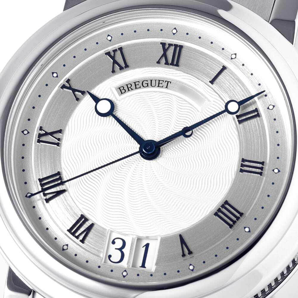 モデル情報 | フランス海軍のマリン・クロノメーター(航海用精密時計)の製造者としてアブラアン・ルイ・ブレゲが築きあげた偉大な遺産からヒントを得た"マリーン"ウォッチ。「海」を連想させるギョーシェや「波」を連想させるローターなど、職人が1本1本手作業で彫り込んだ装飾には細部までマリーンらしい仕上げが施されています。ブレゲらしい端整なデザインと高い視認性、そして上品なディテールを備えながらも、日常使いに耐えうるタフネスさも備えているため、オンオフを問わず活躍してくれるオールマイティーなモデルです。 |