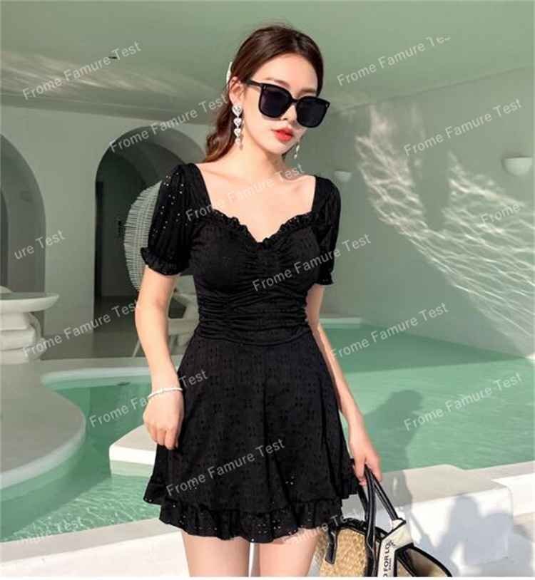 水着 ワンピース オールインワン 水泳服 温泉用 韓国風 海水着 レディース L ブラック