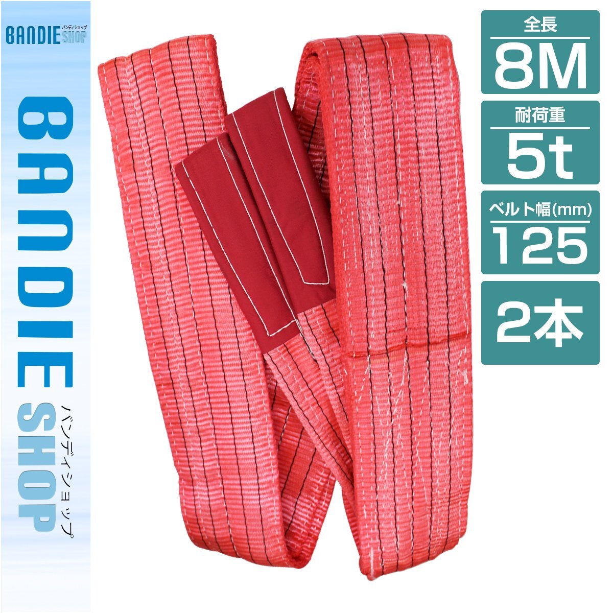 [2本 セット/耐荷5t/長さ 8m] スリング ベルト 吊上げ ナイロン クレーン ロープ 荷吊り 玉掛け 牽引 運搬 5000kg 5トン 幅125mm