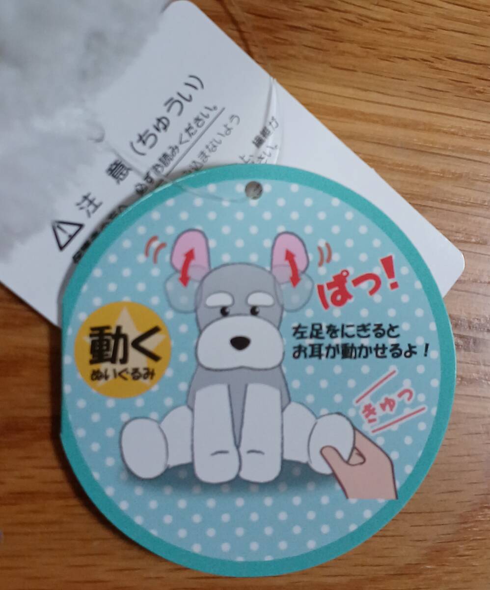 商品はタグ付きです。HOLDを押すと耳がぱたぱた動くぬいぐるみです