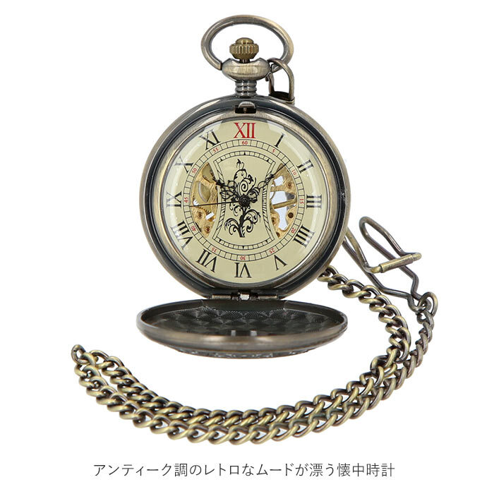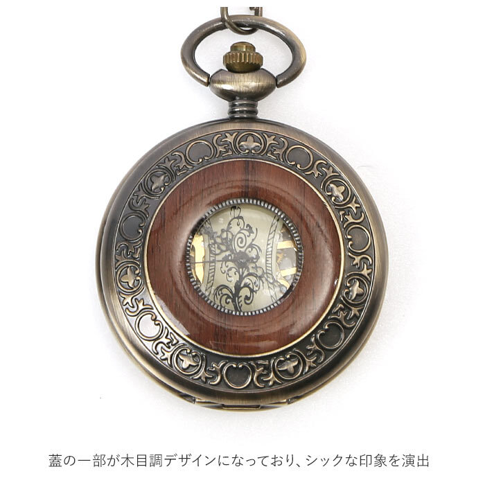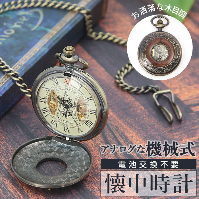商品説明 | ・デジタルな時代に、誰ともかぶらない♪アナログな機械式懐中時計が発売。 ・アンティーク調のレトロなムードが漂う懐中時計。蓋の一部が木目調デザインになっており、シックな印象を演出。 ・蓋と本体の透明窓からのぞく、文字盤やムーブメントがおしゃれ◎ ・電池交換不要な手巻き式。トップのリューズを押し込むと蓋が開くタイプ。 ・存在感があり目を引くデザインの懐中時計は、シンプルなコーディネートのポイント使いにぴったり! ・自分用としてはもちろん、誕生日や進学祝いのギフトに♪定番の腕時計や置き時計から、ちょっと冒険してセレクトするのもおすすめ。 |