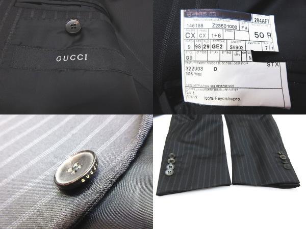 | 訳あり GUCCI グッチ ウール100% スーツ セットアップ ストライプ テーラードジャケット スラックス 50R ブラック 黒 メンズ