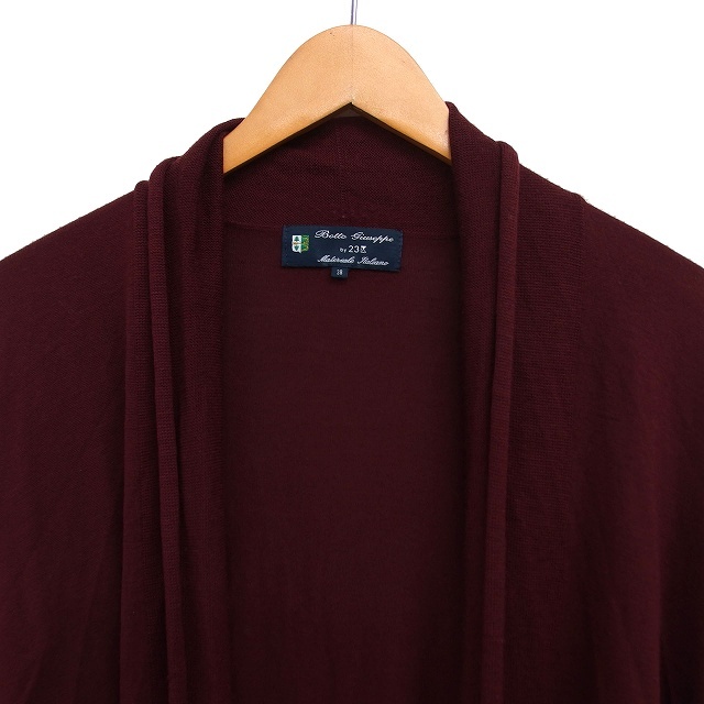 23区 オンワード樫山 ロング カーディガン ニット ウール オープン リブ ロールアップ ハイゲージ 長袖 38 ボルドー /NT26 レディース