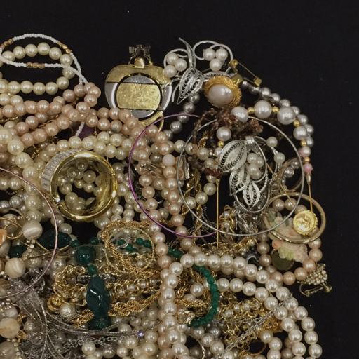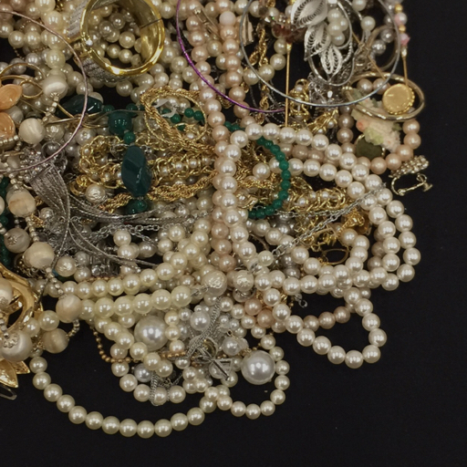 フェイクパール カラーストーン メッキ 他 ブローチ ネックレス イヤリング 等 イミテーション まとめ 総重量約1.0kg |