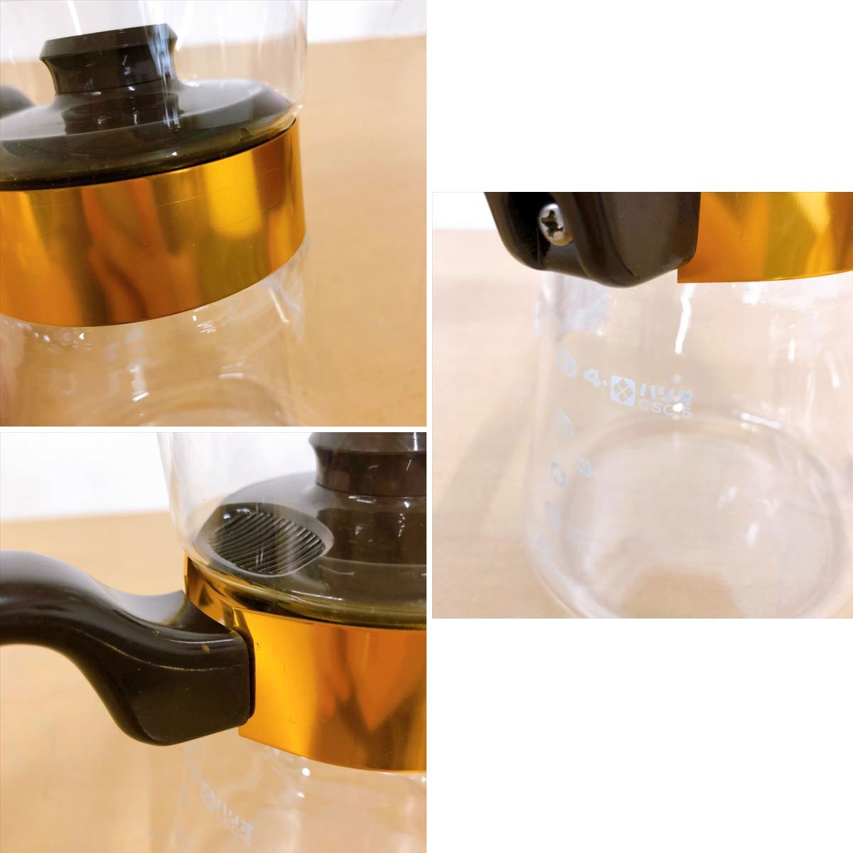 | 未使用に近い ※画像にあるものが全てです。内容は画像をご覧ください。 長期保管未使用品と思われますが、買取品につき詳細不明な事や経年による塗装などの劣化状態により未使用に近い中古品として出品致します。 グラスの塗装などに劣化を感じます。 くすみや擦りきず、保管に伴う汚れなど全体的に見られます。 コーヒーフィルターは内袋未開封です。 箱は目立つシミやへこみ、破れや擦れ、ガムテープの貼付、書き込みなどがあり状態良くありません。 仕様