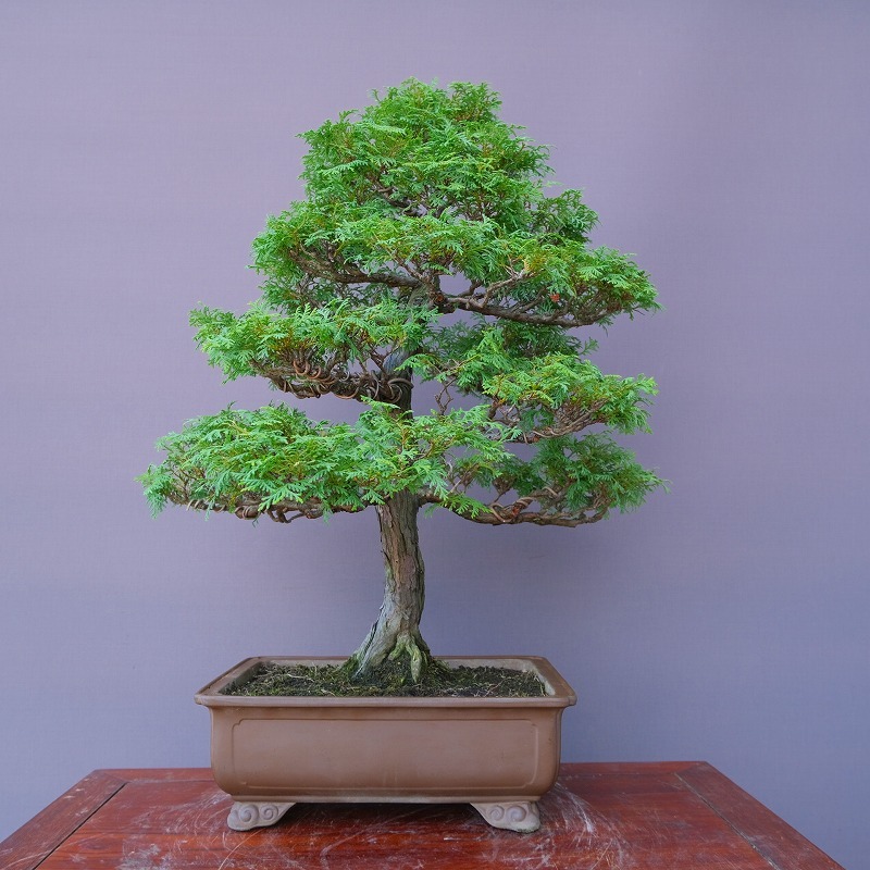 説 明 | 傷のない幹が自然で優しい幹模様を描いています。枝ぶりもバランス良く仕上げており、大木感の表れた一樹です。 |