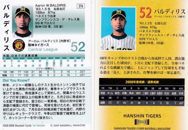 ●2009BBM/阪神 【バルディリス】 通常版 2種セット No.276&T053