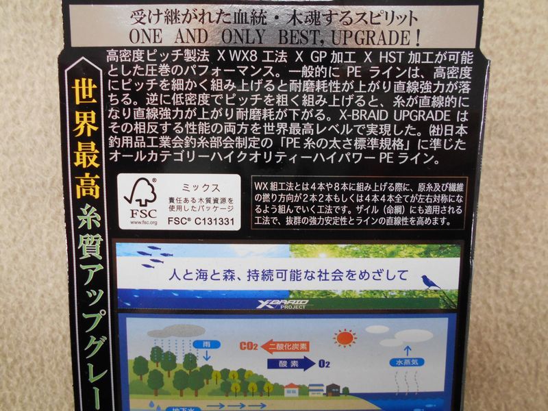 高密度ピッチ製法× WX8工法 × GP加工 × HST加工が可能とした圧巻のパフォーマンス。一般的にPEラインは、高密度にピッチを細かく組み上げると耐磨耗性が上がり直線強力が落ちる。逆に低密度でピッチを粗く組み上げると、糸が直線的になり直線強力が上がり耐磨耗が下がる。X-BRAID UPGRADは、その相反する性能の両方を世界最高レベルで実現し、(社)日本釣用品工業会釣糸部会制定の「PE糸の太さ標準規格」に準じたオールカテゴリーハイクオリティーハイパワーPEラインです。