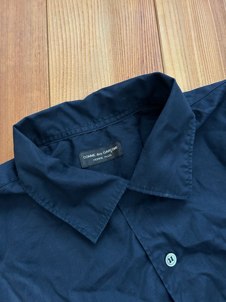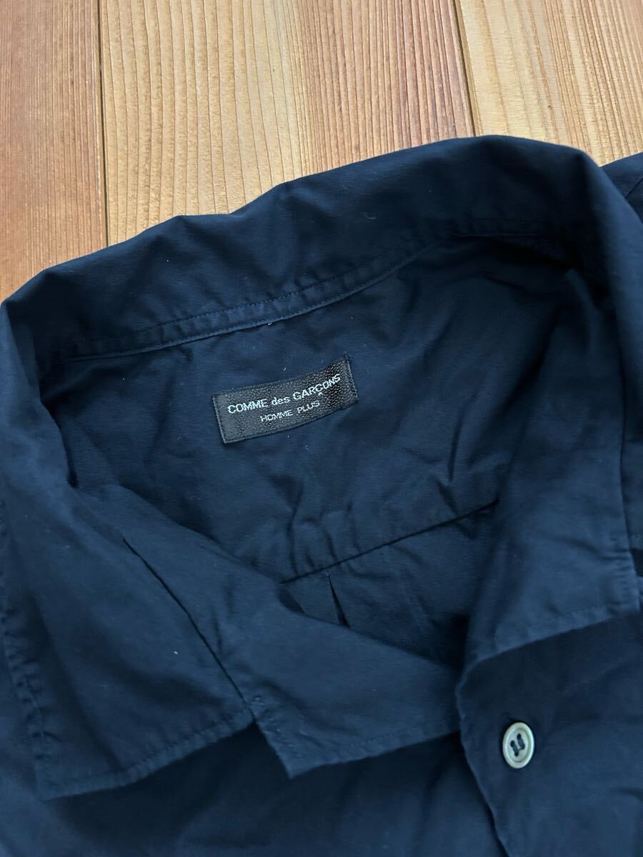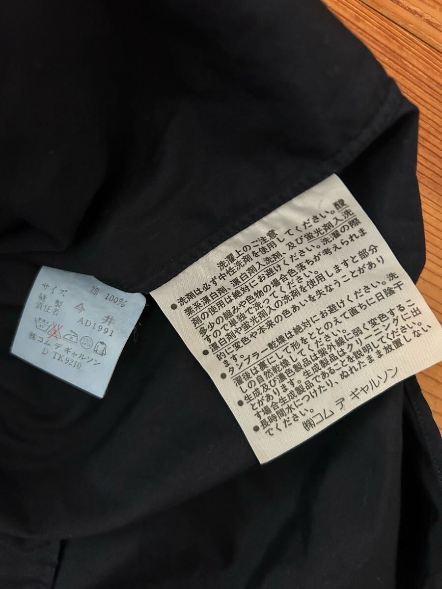 プリュスの1991の長袖シャツです。写真からわかります様に前面に変色がございます。保管中についたと思います、洗濯してもだめでした。サイズ表記はなく着丈(後ろの首の付け根)が約79.身幅62.色は黒に近い紺です。