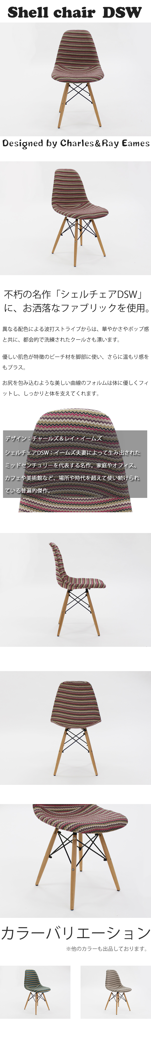 | 商品紹介 | ■デザイン:チャールズ&レイ・イームズ ■シェルチェアDSW:イームズ夫妻によって生み出されたミッドセンチュリーを代表する名作。家庭やオフィス、カフェ や美術館など、場所や時代を超えて使い続けられている普遍的傑作。 フォルムはそのままに、座面にファブリック柄を使用し、さらに華やかさとアート感をプラス。 ■材質:ファブリック(ポリエステル)・ポリプロピレン・ビーチ材・スチールワイヤー ■カラー:レッドストライプ(複数色ストライプ) ■こちらの商品は、組立式になっております。 ■こちらの製品は、版権の切れたチャールズ・イームズの作品を元に弊社オリジナルで制作いたしました。リプロダクト製品になります。 | |