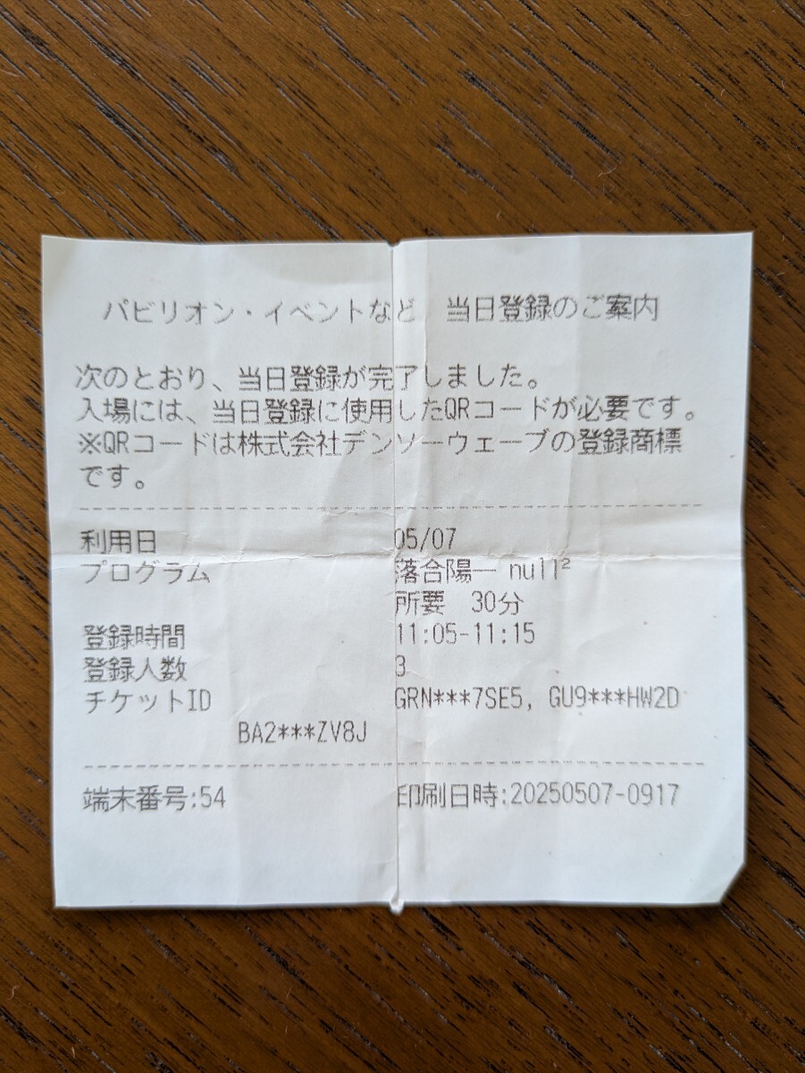 ヌルヌルの当日予約端末の券です。