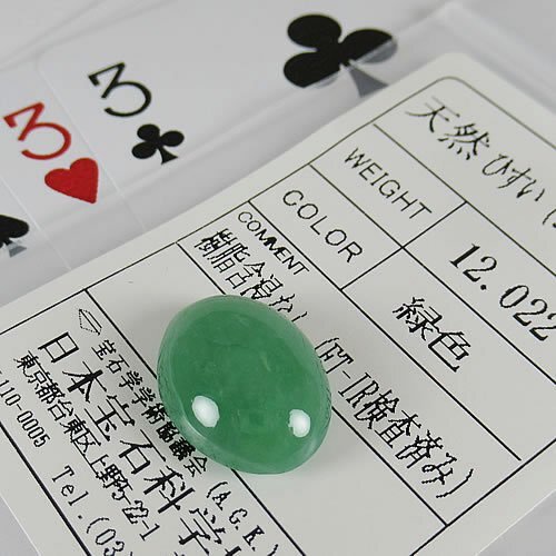 品名 /【SJ】新品 大粒ヒスイ(ジェイダイト) 12.02ct ジュエリールース 材質 / 天然ヒスイ(ジェイダイト) 縦・横 / (約)17mm 13mm 厚さ / (約)6.5mm 総重量 / 12.02ct 日宝協ソーティング付き 【SJ】/ 新品製品 品番 / ACD630 参考小売価格 / 308,000円 |