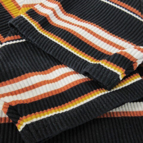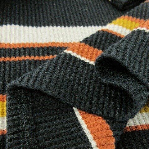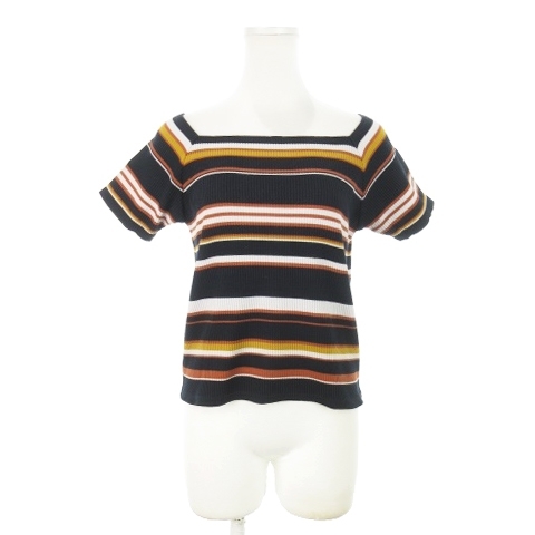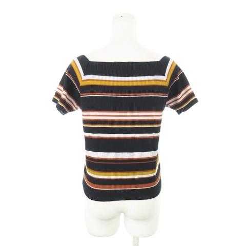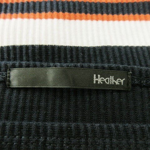 ヘザー Heather カットソー リブ スクエアネック 半袖 ショート丈 マルチ ボーダー F 黒 ブラック /AH7 レディース