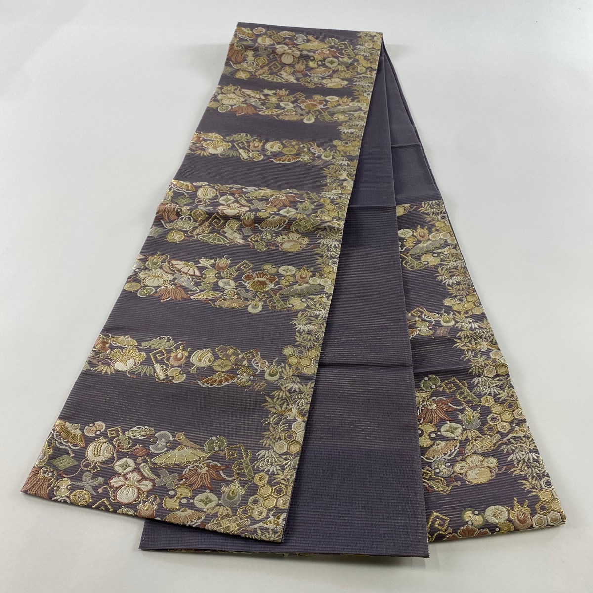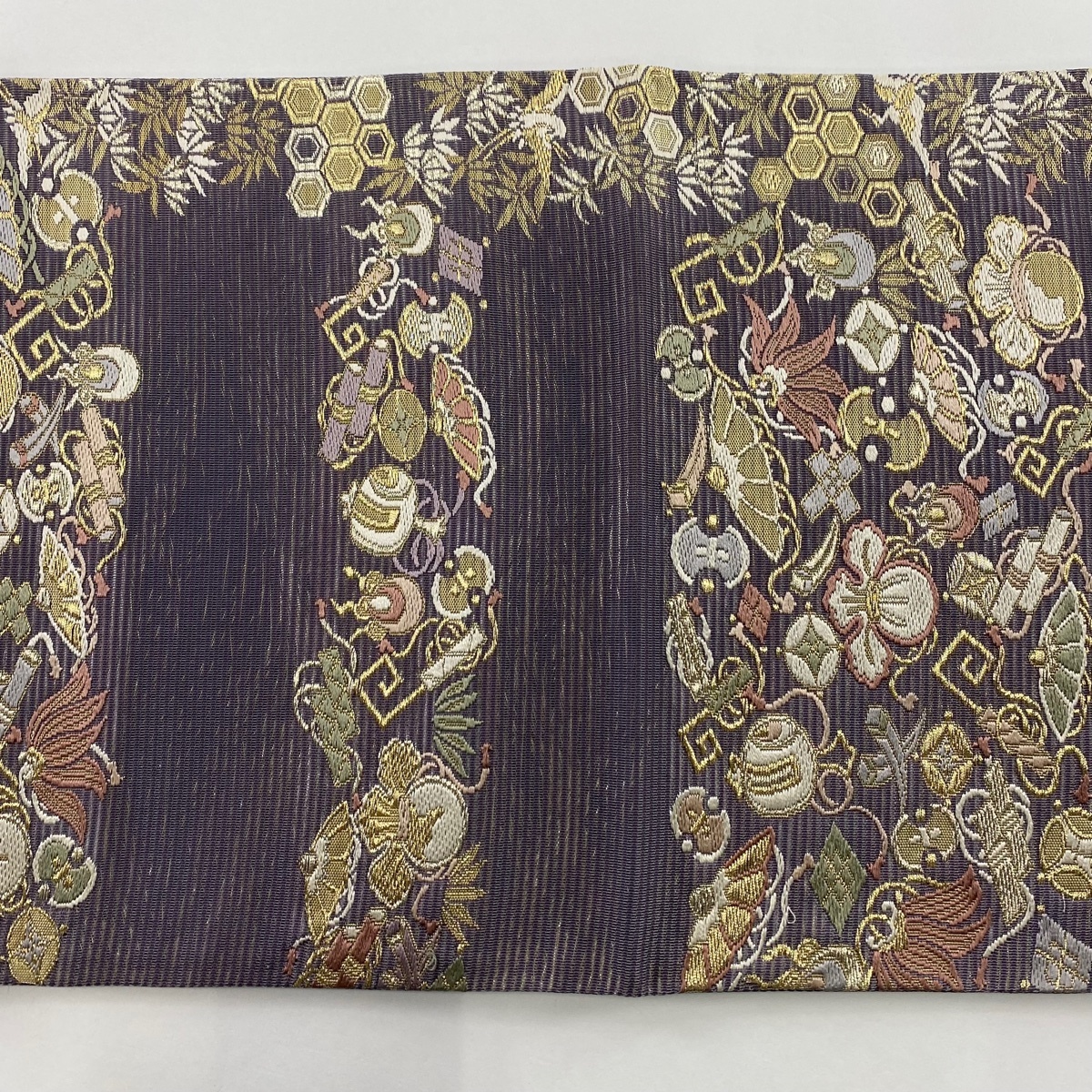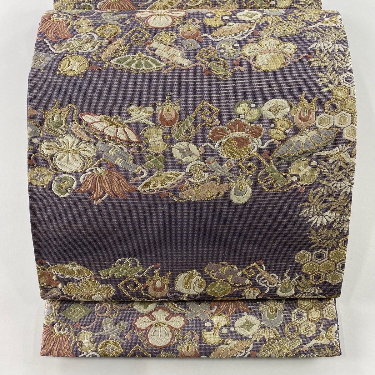 | 袋帯 美品 秀品 宝尽くし 金糸 箔 薄紫 六通 正絹 【中古】 |